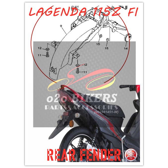 HLY Yamaha Lagenda 115 fi Original Rear Fender Ekor Mudguard Belakang SRL115 FUEL INJECTION