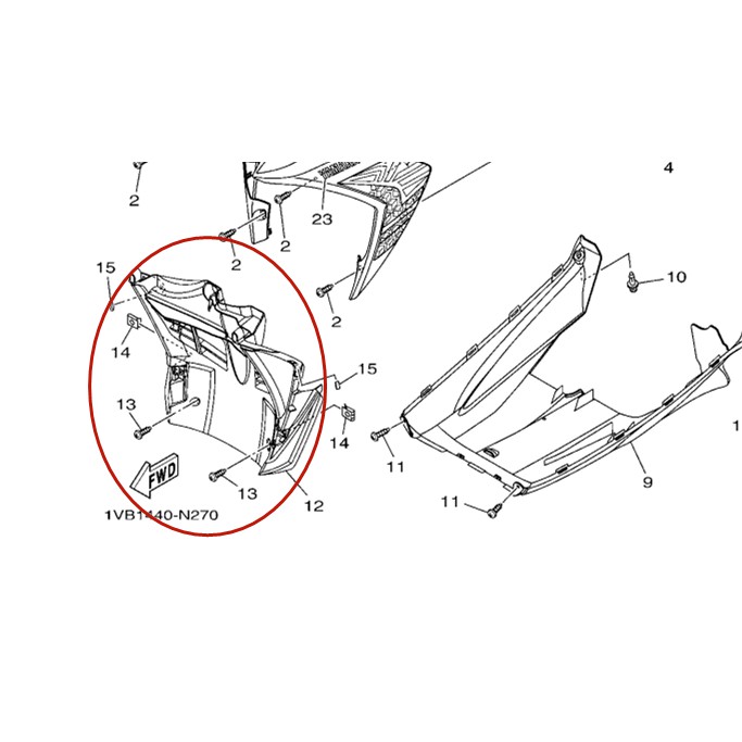 MUDGUARD INNER ORIGINAL YAMAHA EGO-S FI,EGO S FI (FUEL INJECTION) NEW LEG SHIELD FENDER MUDGUARD INNER PANEL COVER MATT