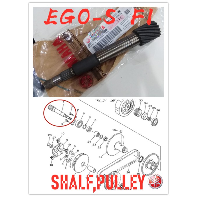 100% ORIGINAL HONG LEONG YAMAHA SCOOTER EGO S 125 FI FUEL INJECTION ENGINA PARTS BELTING PULLEY DRIVE SHALF GEAR PRIMARY