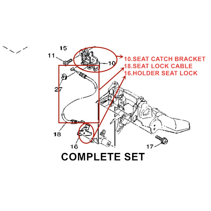 100% ORIGINAL HONG LEONG YAMAHA LC135 V2,V3,V4,V5,V6 INNER MAIN SWITCH ASSY KEY SET WITH SEAT LOCK HOLDER BRACKET CABLE