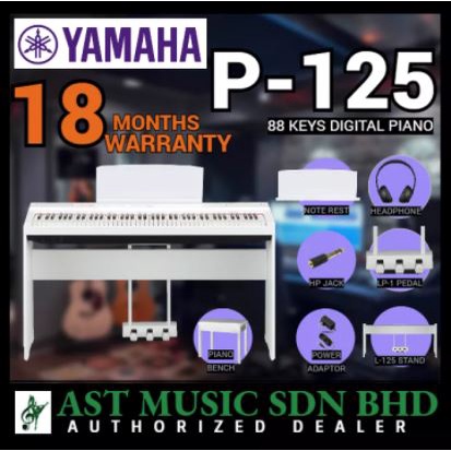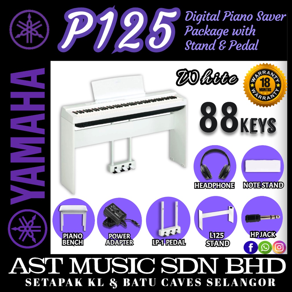 Yamaha P-125 88-Keys Digital Piano with Piano Bench and Headphone (P125 / P 125) White