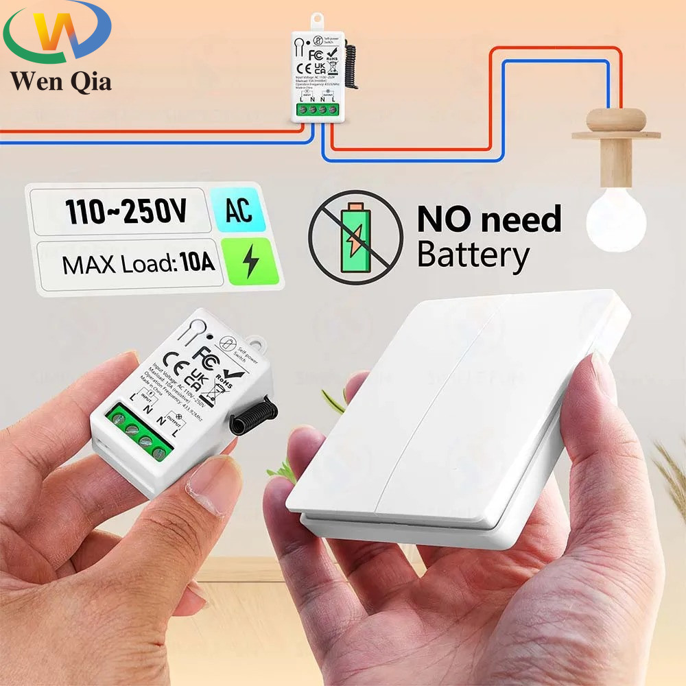 433mhz Wireless Light Switch 110V 220V 230V Self-generating Wireless Switch No Battery Required Self-Powered Waterproof Remote