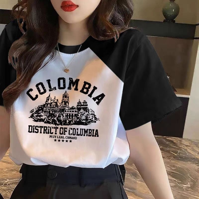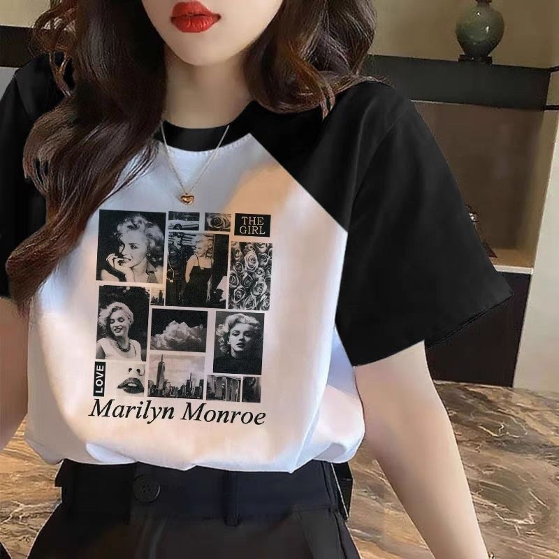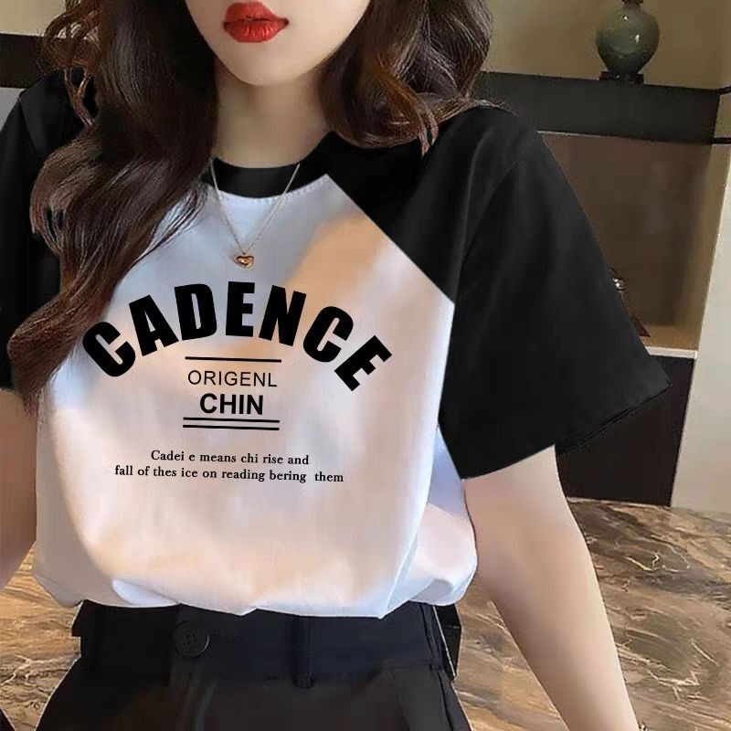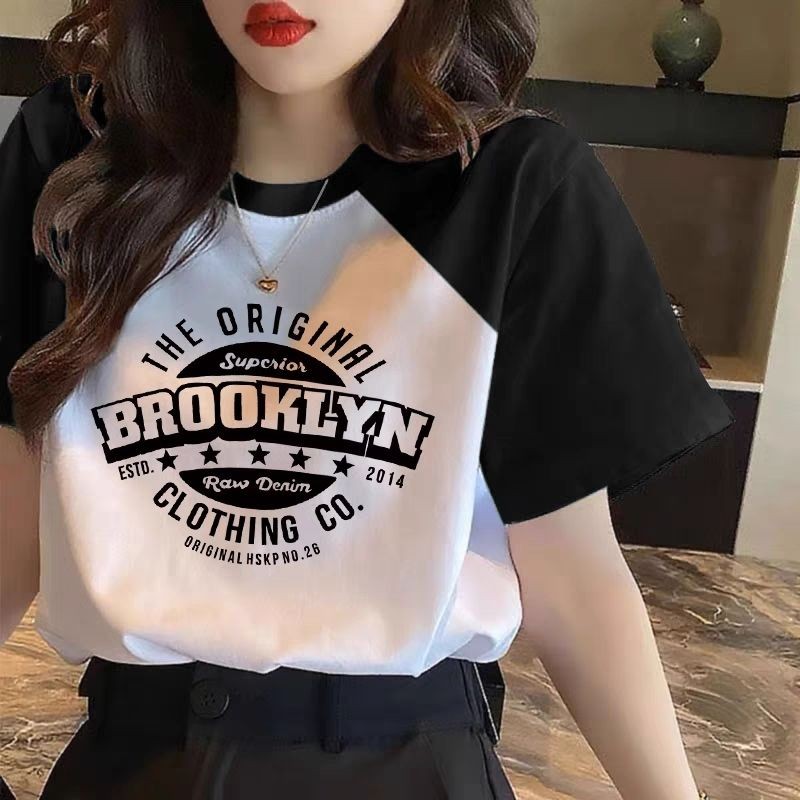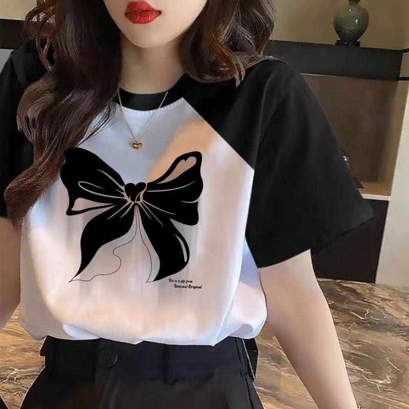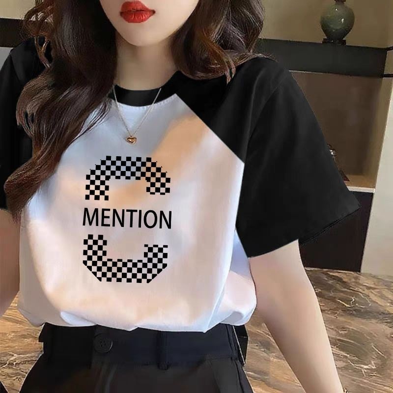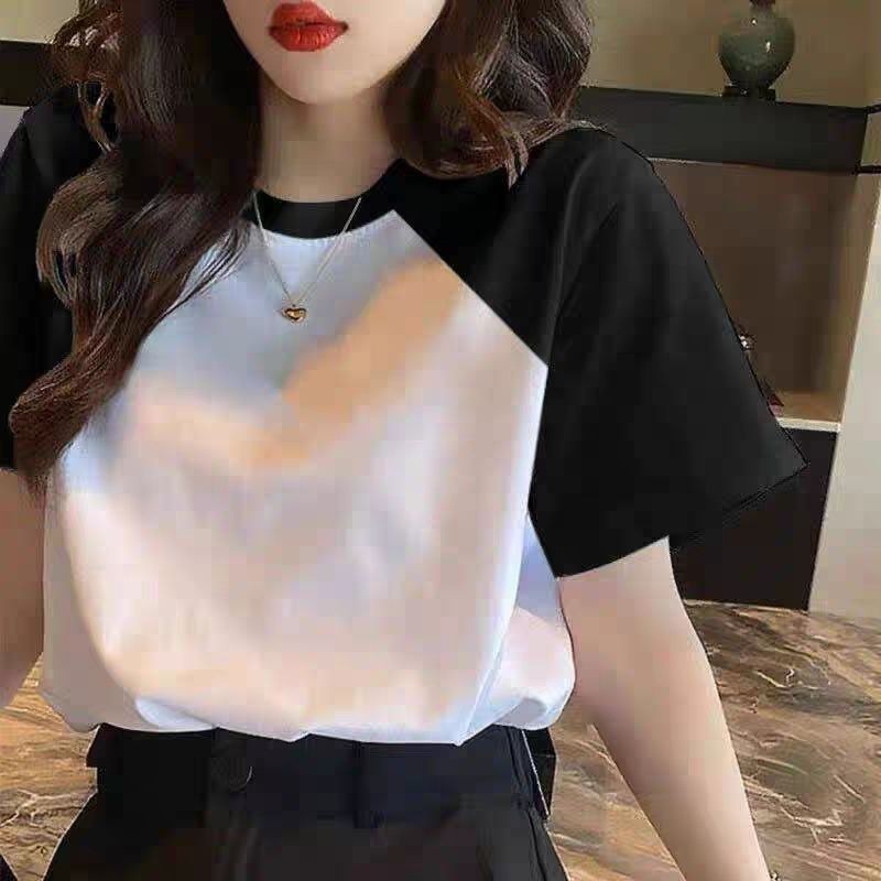 黑白撞色正肩显瘦短袖T恤女夏季大码胖mm设计感小众上衣Black and White Contrast Shoulder Slim Short-sleeved T-shirt Women's SummerDFH20250821