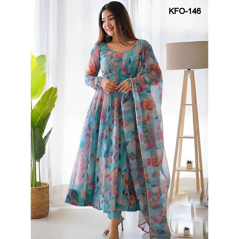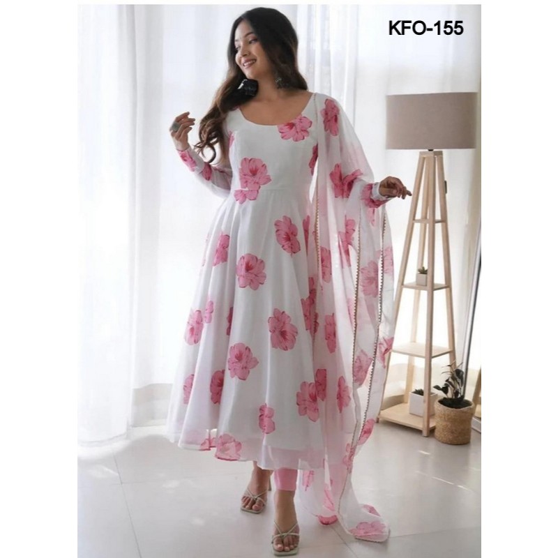 (XS To 10XL) Women's Georgette Digital Printed Trendy Beautiful Gown With Dupatta KFO-156