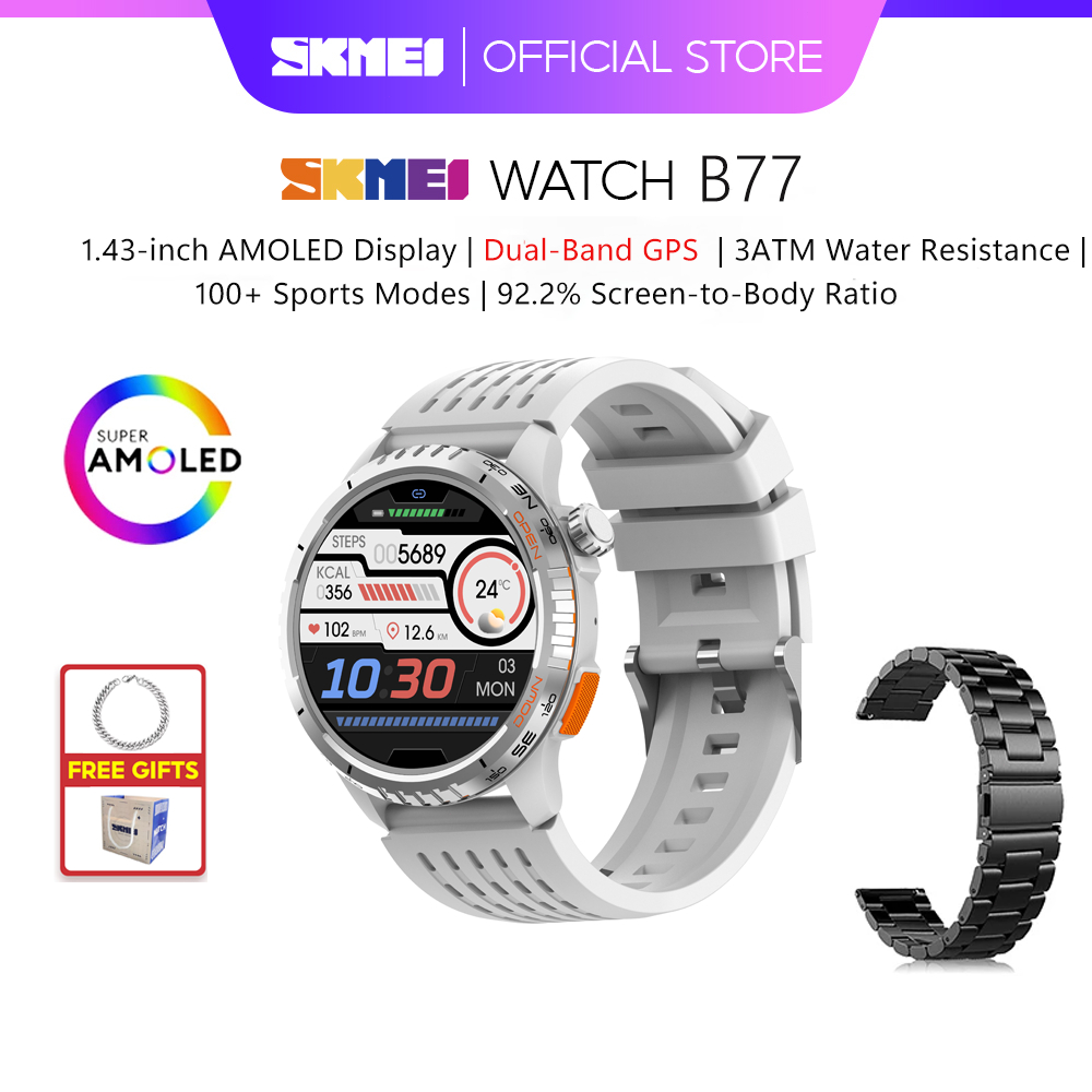 SKMEI B77 Smartwatch Man Built-in GPS 3ATMWaterproof 1.43" 60Hz AMOLED Display Outdoor Sports Fitness Tracker 22mm Strap
