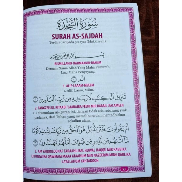 almulk , assajadah, alwaqiah, surah Yasin ada rumi