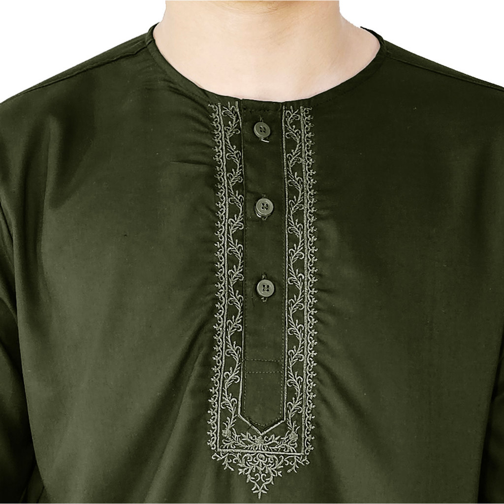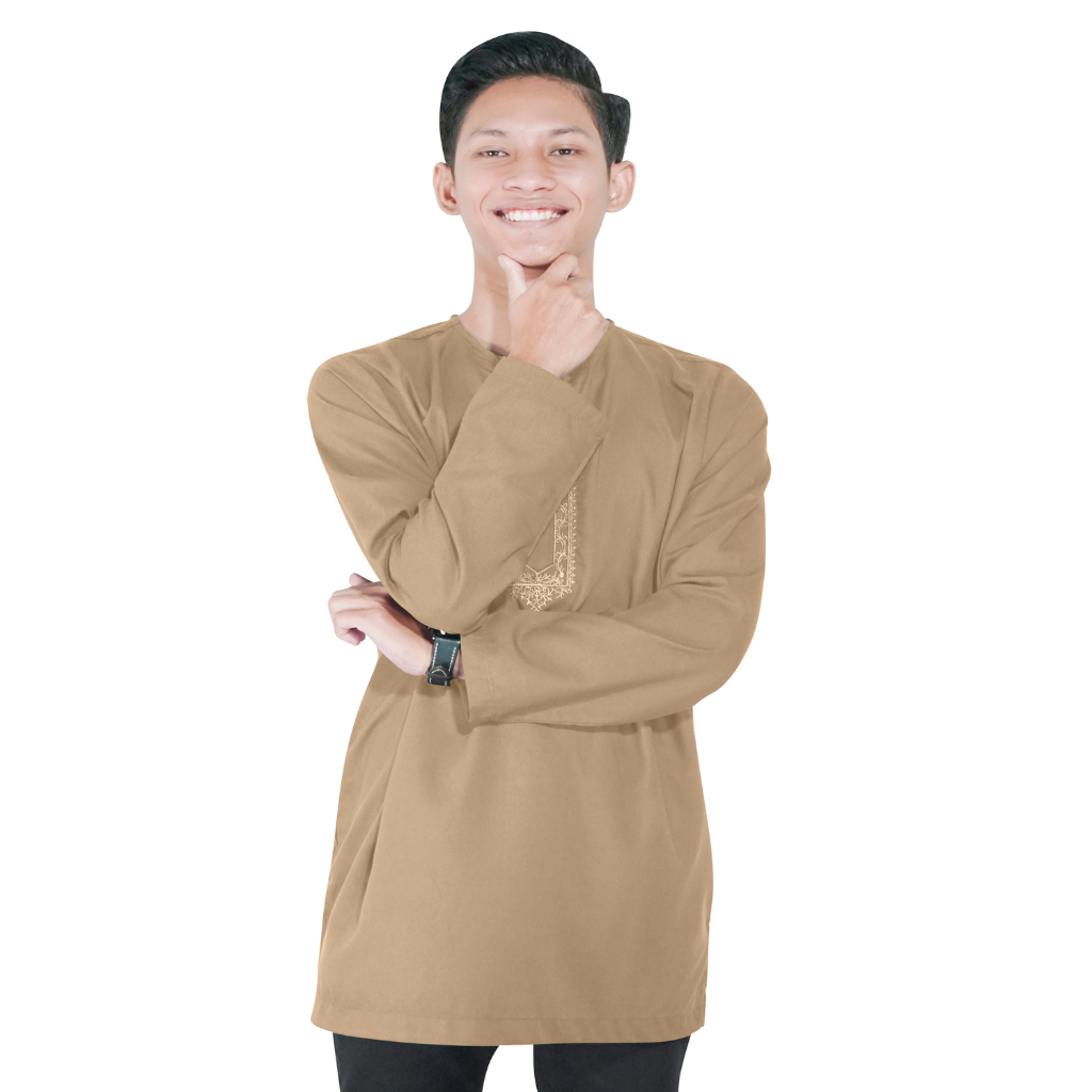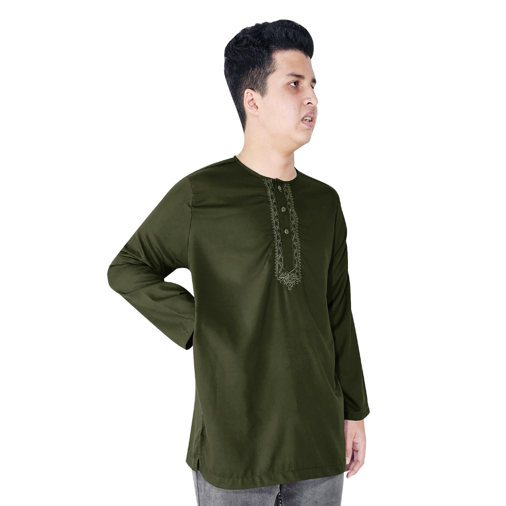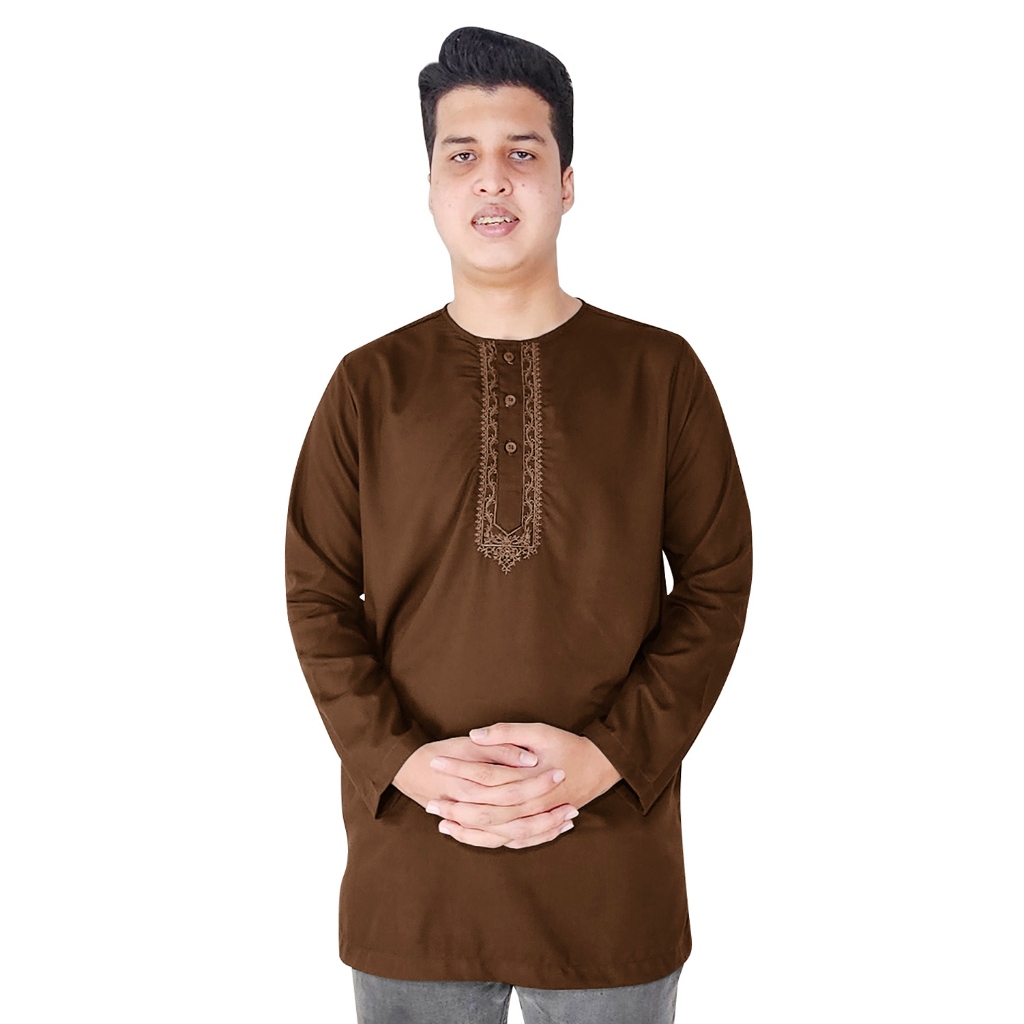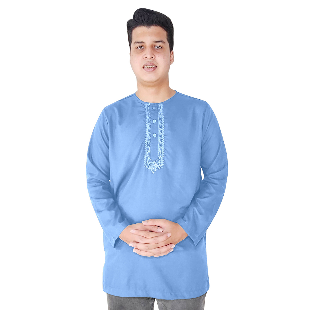 Exclusive Kurta Sulam Lelaki Baju Premium Cotton Fabric Kurta Berpocket Round Neck