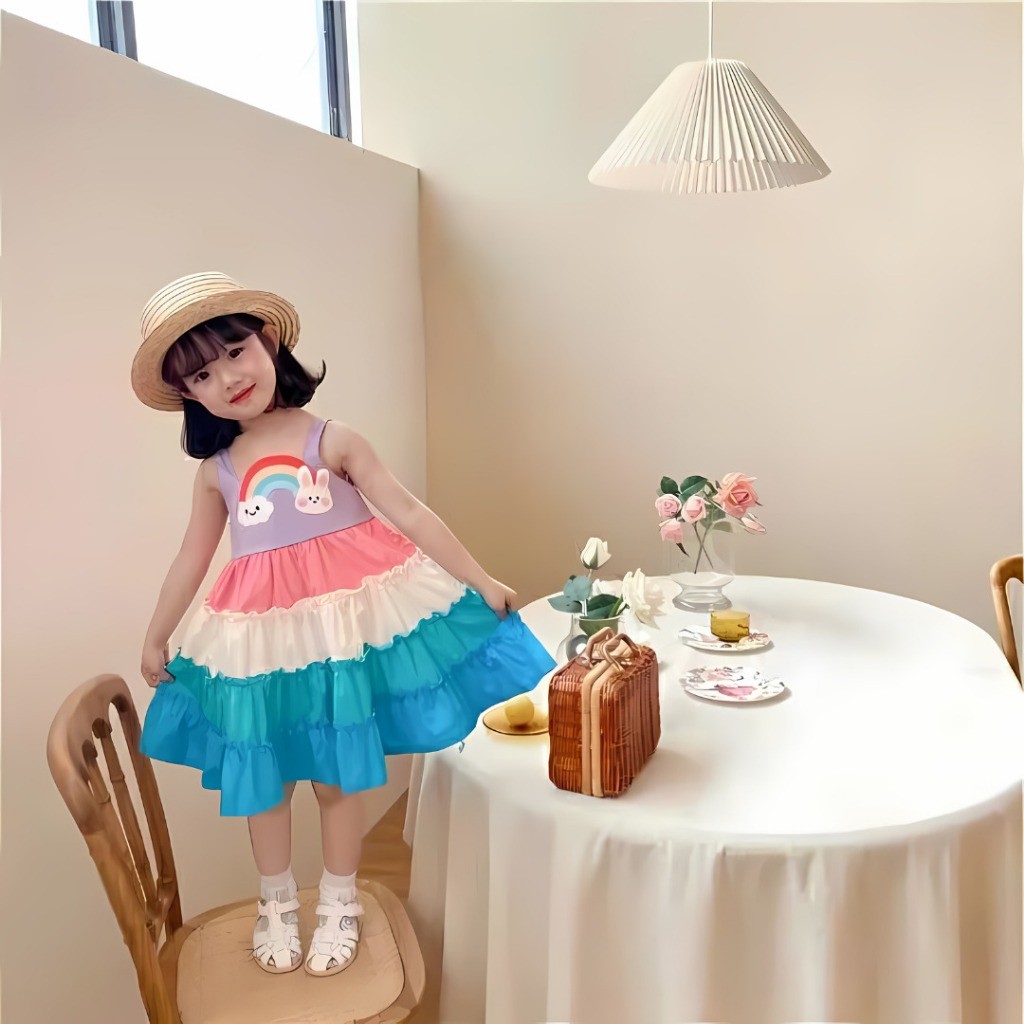 ALESHA - Yuriko Rainbow Bunny Carrot Kids Dress with Cute Embroidery Latest Korean Style Girls' Fashion Dress/ dress budak perempuan