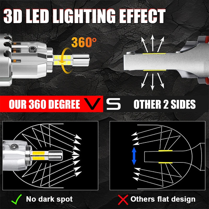 Carlitek LED Headlight Bulbs 360 Degree 4 Sides LED Chips 300W 30000LM Headlamps Mini 1:1 Plug&play Car Fog Lamp White 6000K