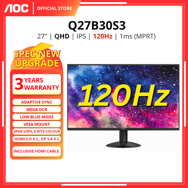 AOC Q27B30E (75Hz) / Q27B30S3 (120hZ) 27" MONITOR ( 27" IPS QHD / 4Ms / ADAPTIVE-SYNC / HD MI + DP )