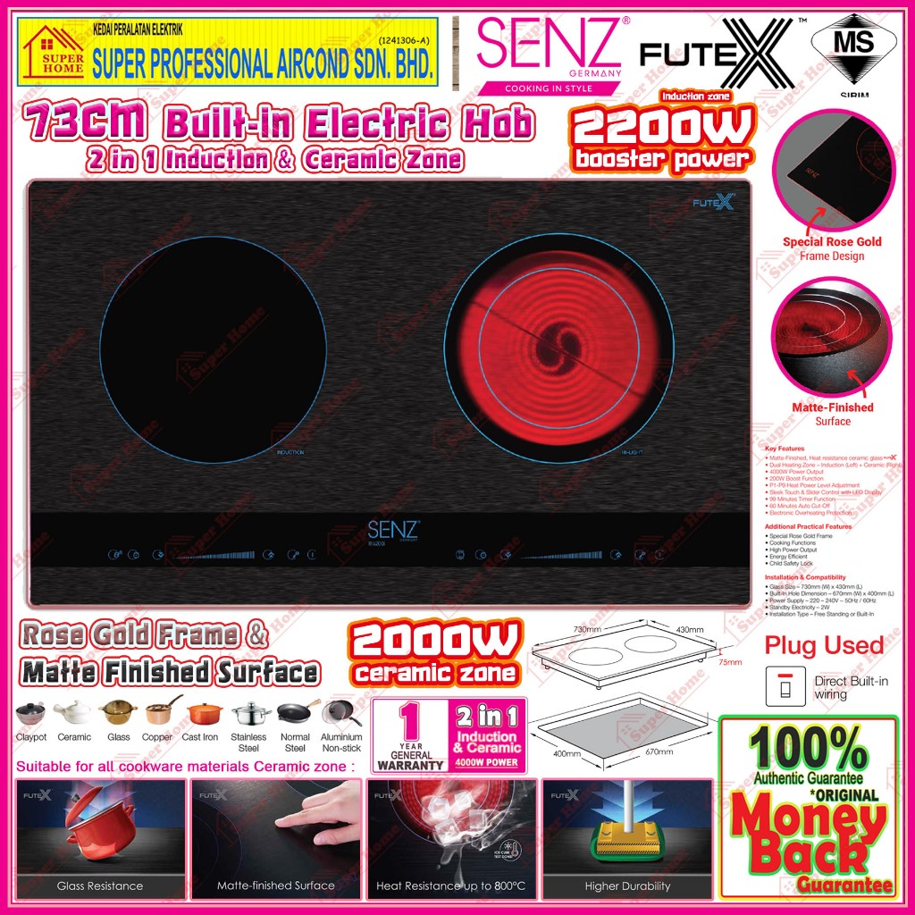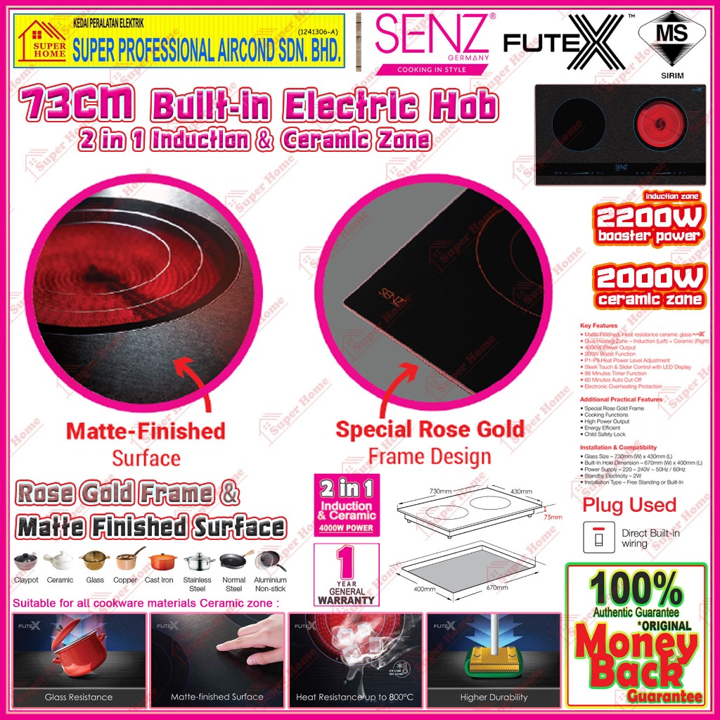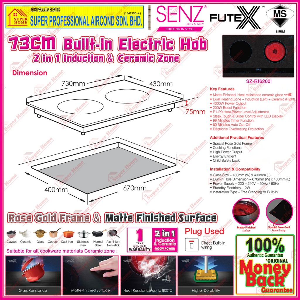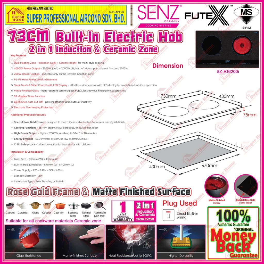 Senz Electric Cooker Hob SZ-RI6200i 2 in 1 Smart Cooker 73cm Tempered Glass with Rose Gold Frame