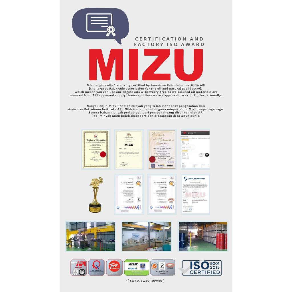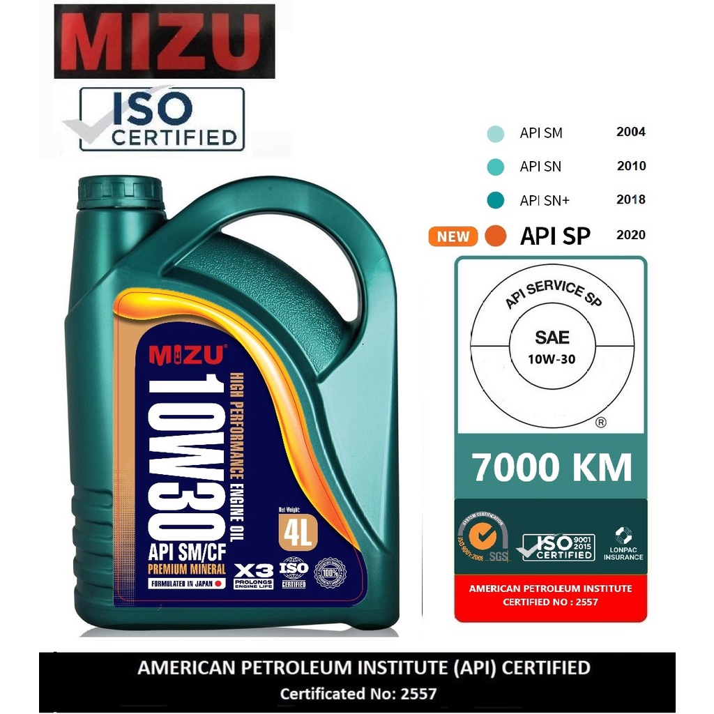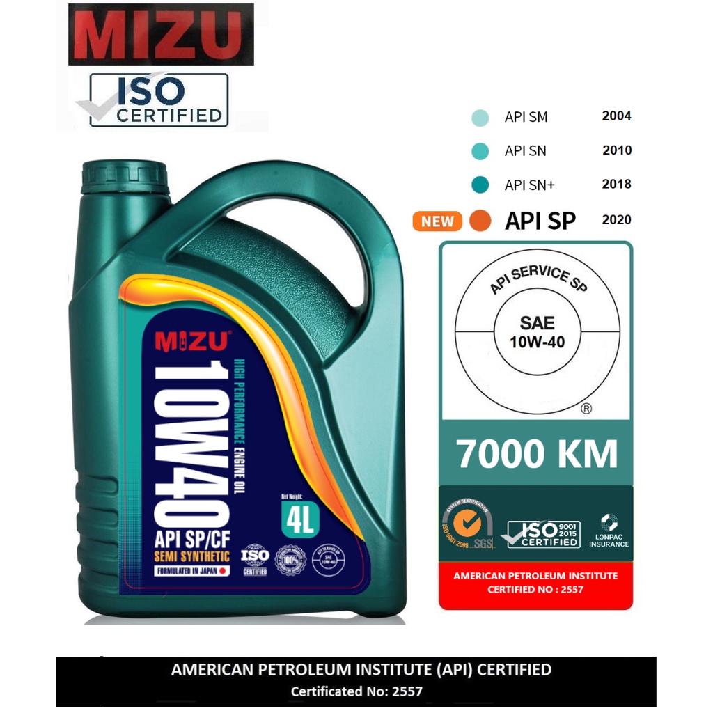 Mizu Semi Synthetic Lubricant 10W-40 SP / 10W-30 SP Genuine Engine Oil - 4 litres