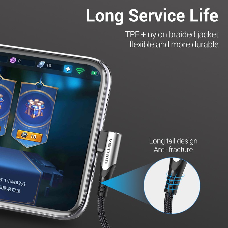Vention USB C Cable 90 Degree 3A Fast Charge 480Mbps Transmission Type C Cable