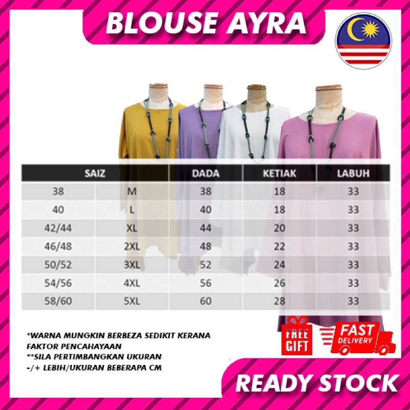 🔥(Ready Stock) Blouse Ayra V2 Plain by Auni Amani - M / L / XL / 2XL / 3XL /4 XL / 5XL