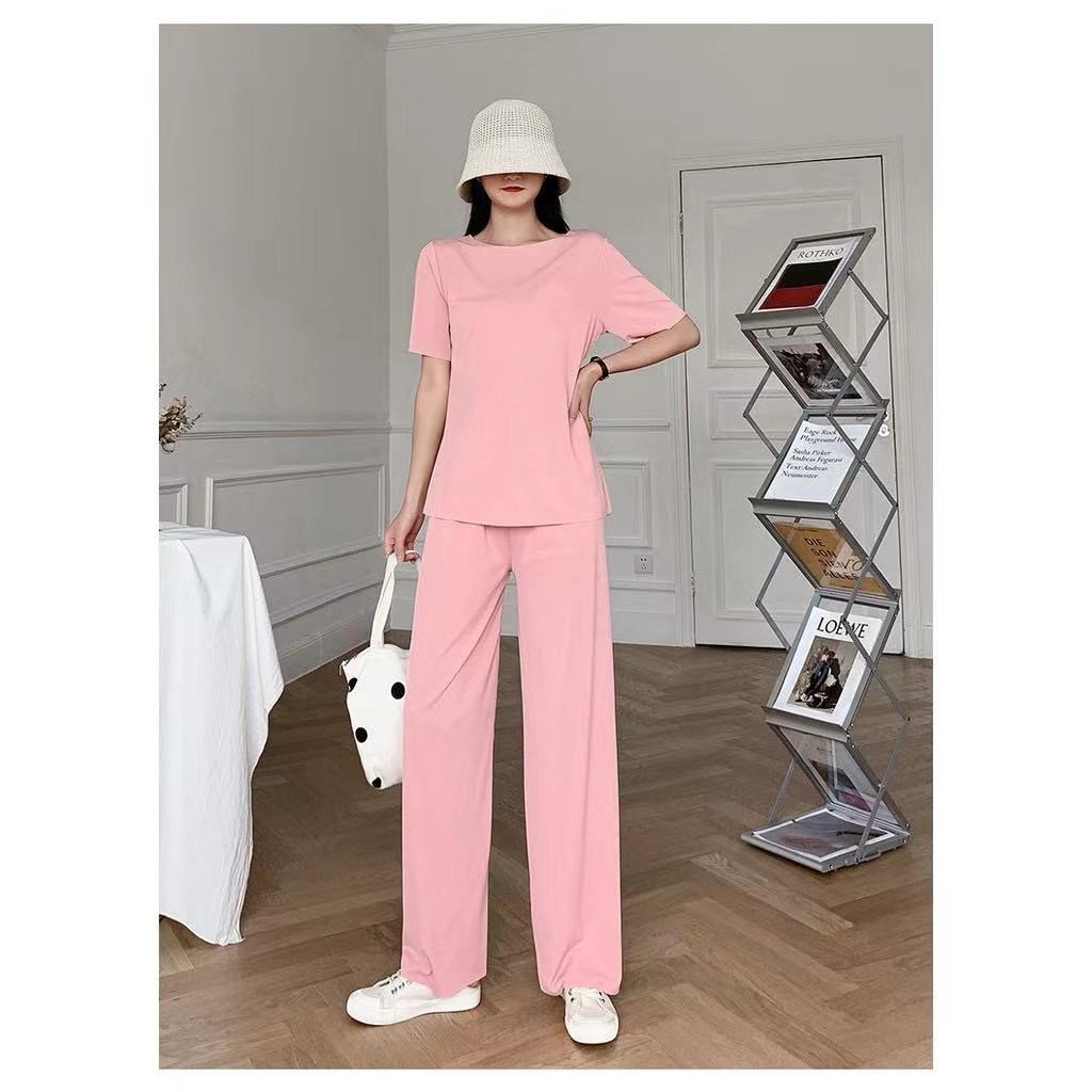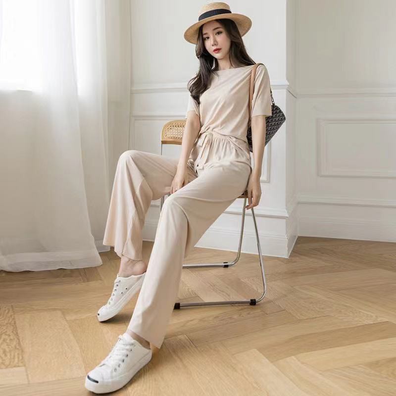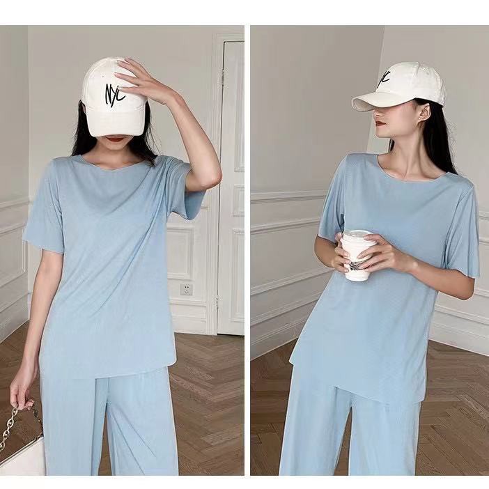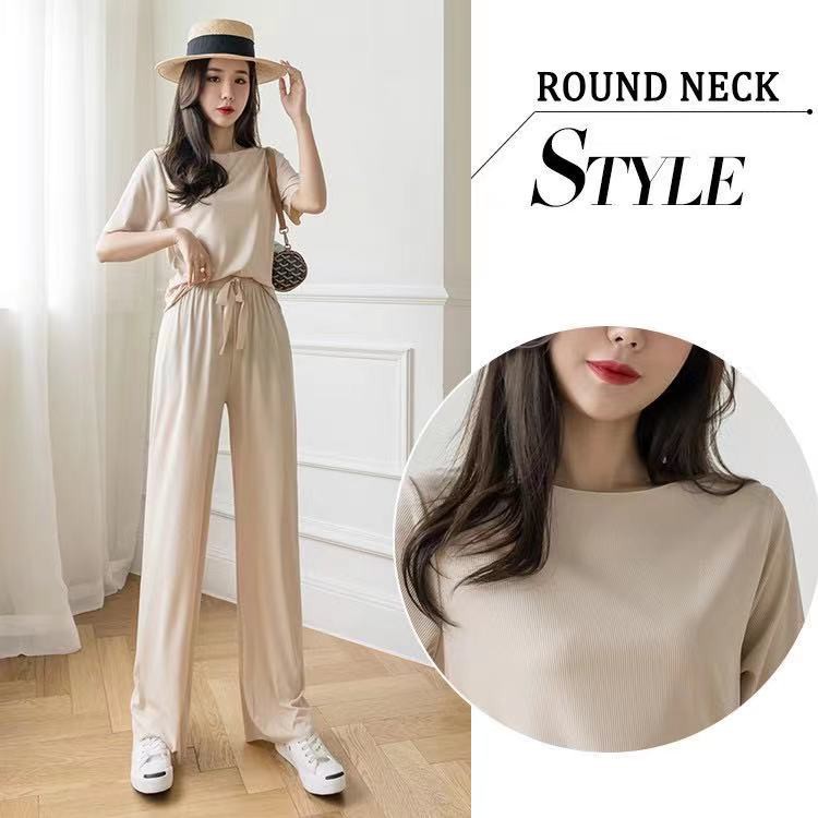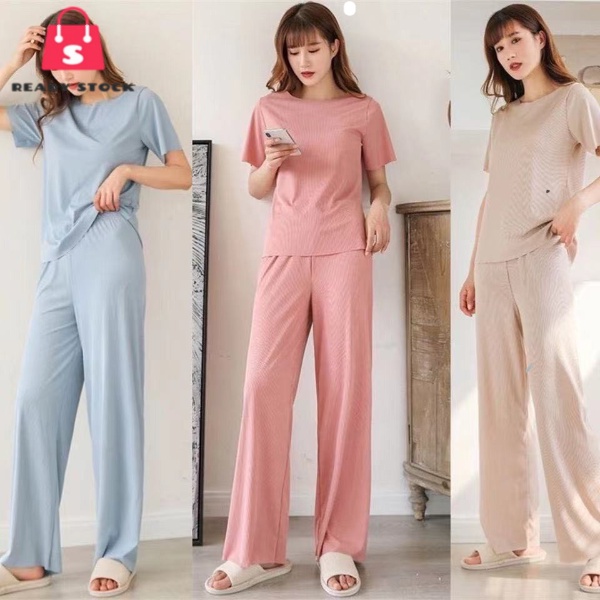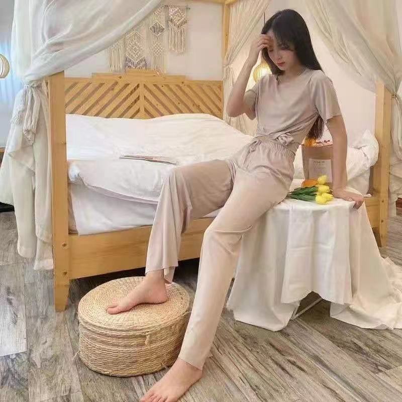 RSS_ 【Set berkualiti tinggi】 Piyama wanita, mantel sutera ais, pakaian rumah sutera musim panas lengan pendek