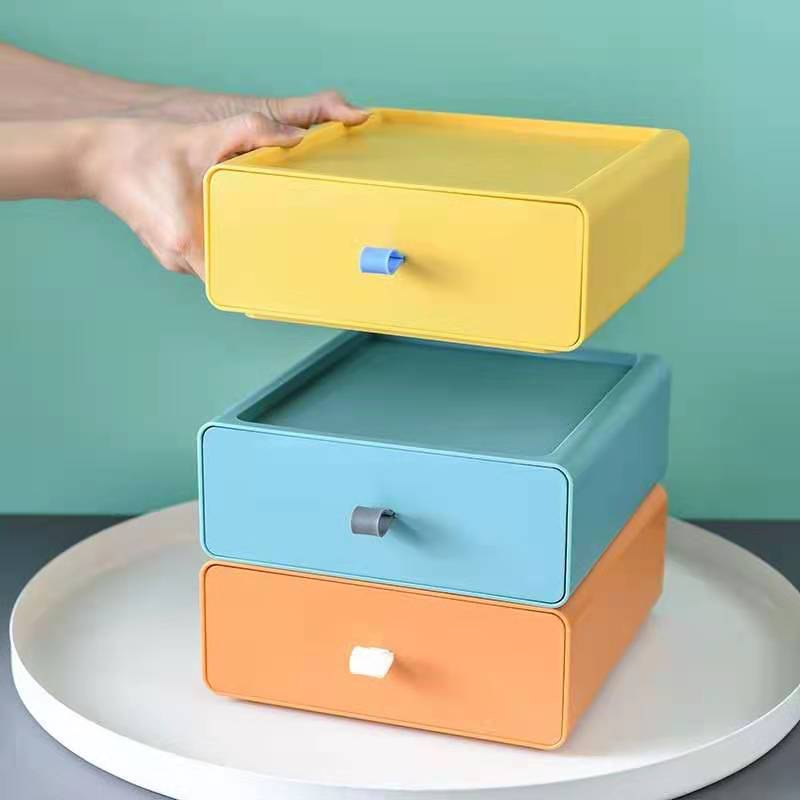 RSS_Plastic Storage Organizer Stackable Desktop Organization Drawers for Makeups, Bathroom, Dorm, Desk, Vanity