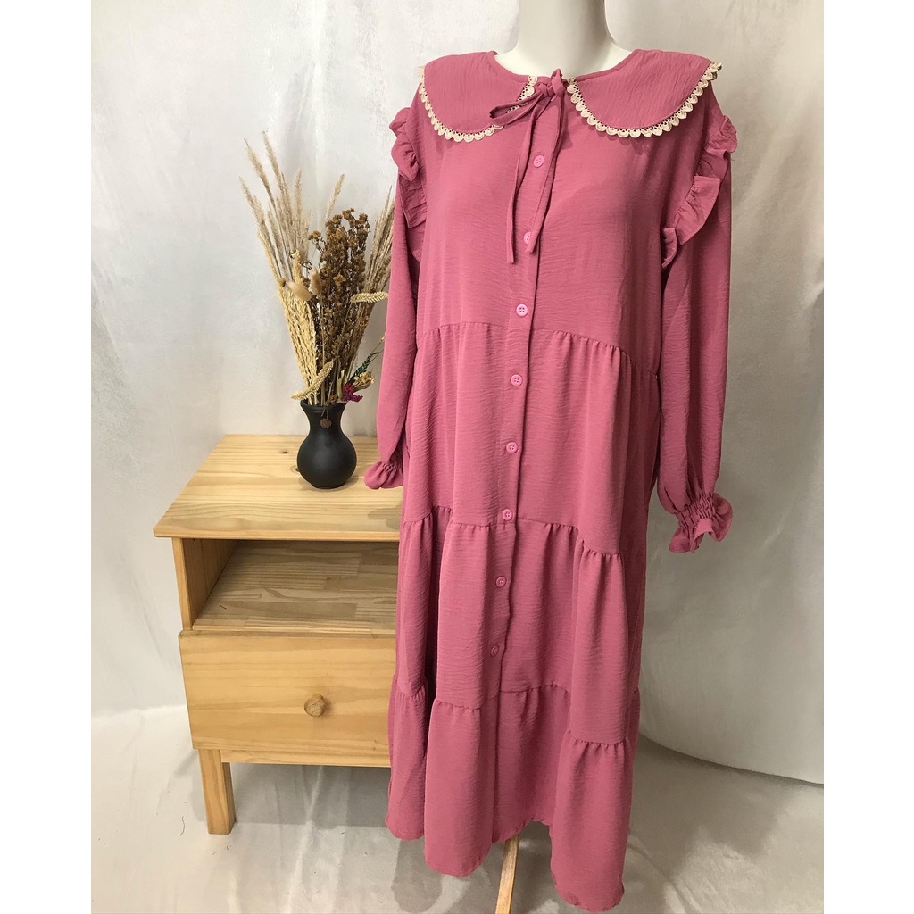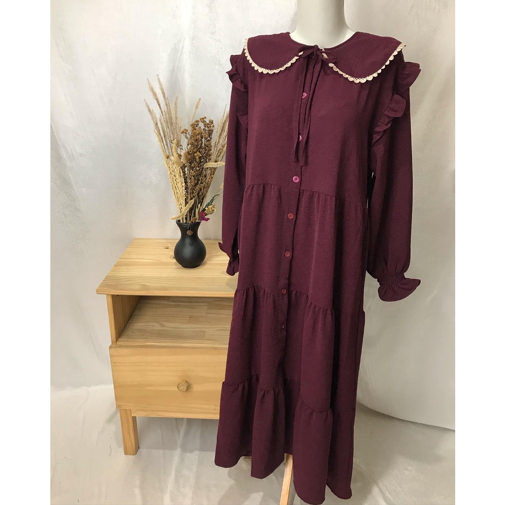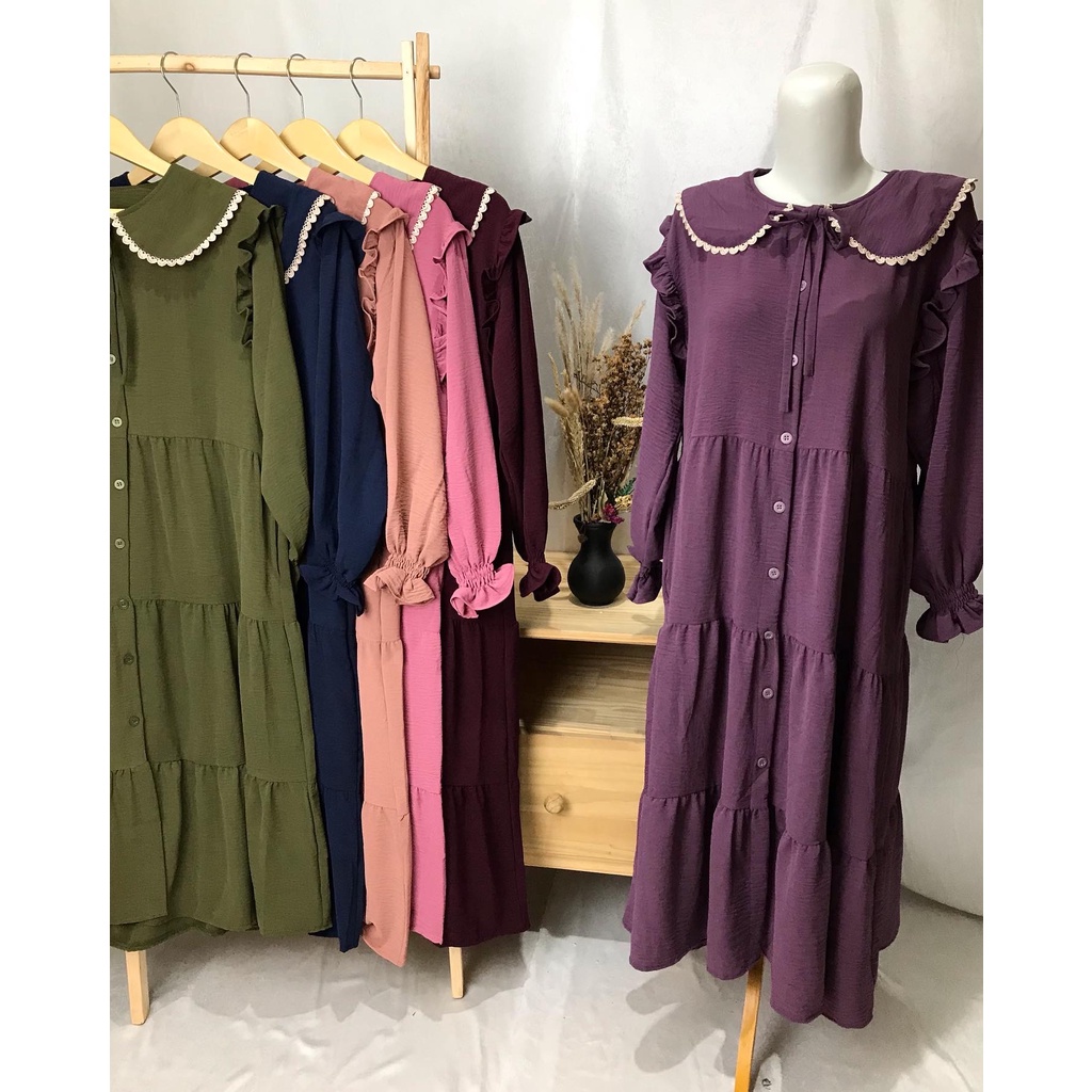 WULAN MIDI DRESS CRINKLE PREMIUM COLLAR SIMPUL MUSLIMAH BUSUI BUMIL HIJAB FASHION MUSLIM WHOLESALE PGMTA FREE BROS