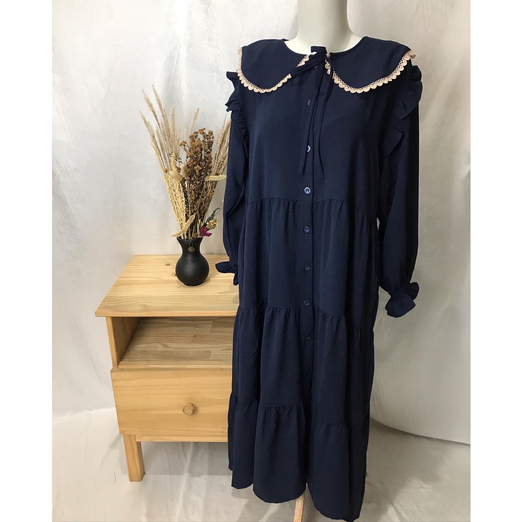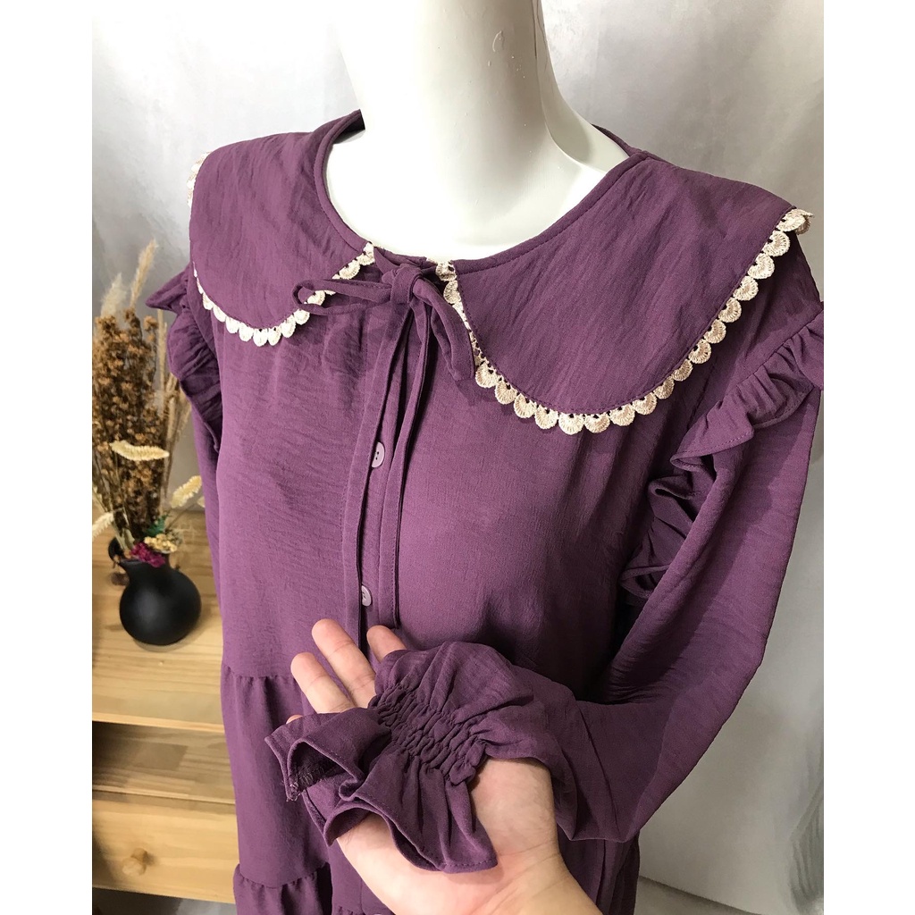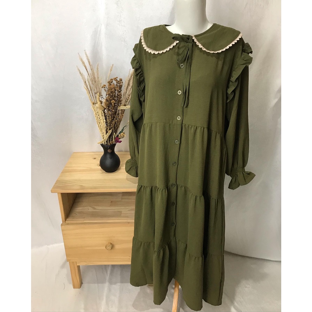 WULAN MIDI DRESS CRINKLE PREMIUM COLLAR SIMPUL MUSLIMAH BUSUI BUMIL HIJAB FASHION MUSLIM WHOLESALE PGMTA FREE BROS