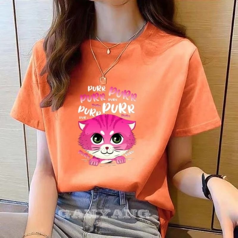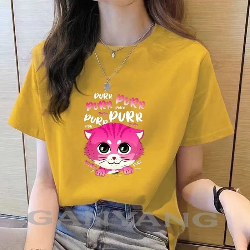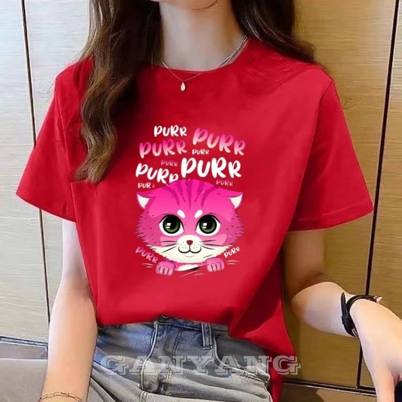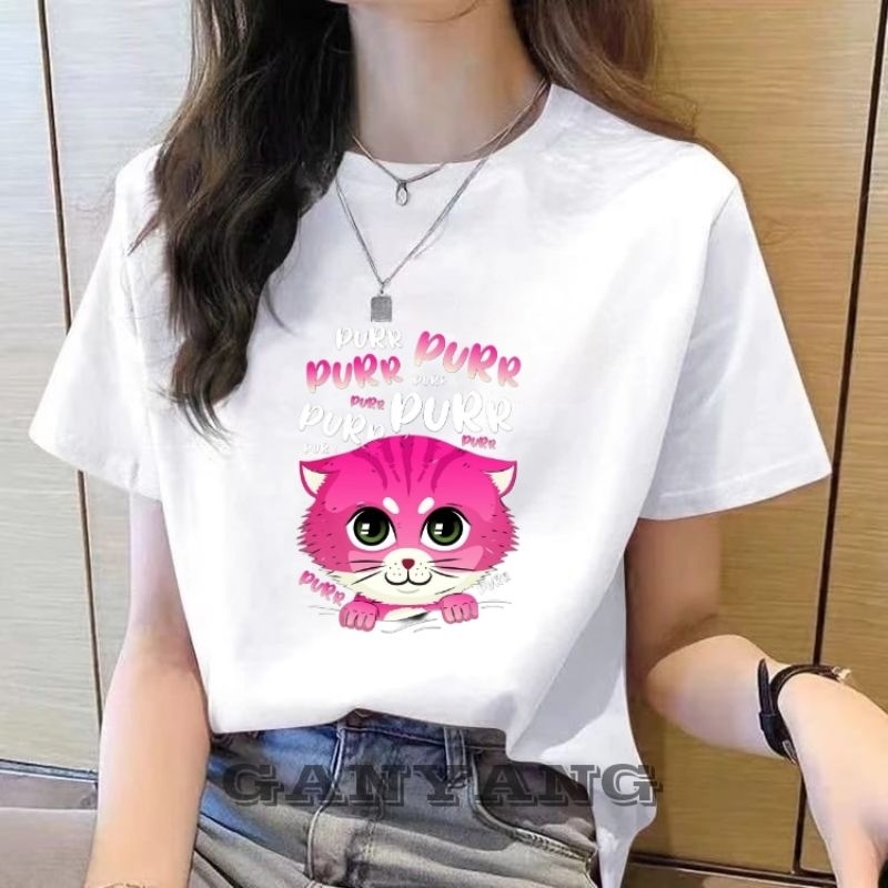Purr Cat T-shirts for Women, Latest model Women's Tops, Short Sleeve Women's T-shirts, distro T-shirts