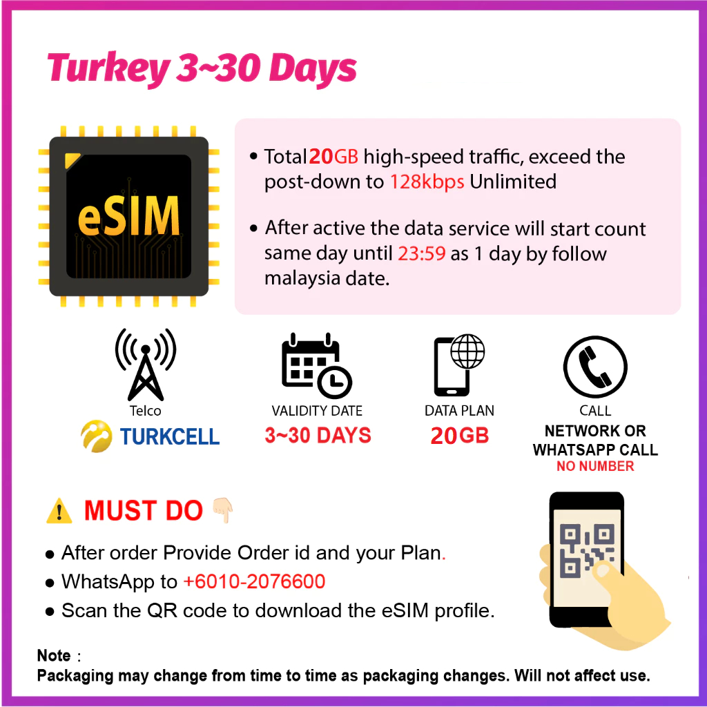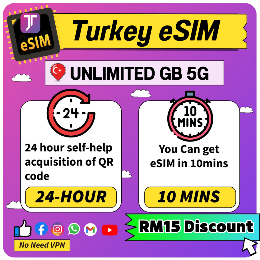 JTravel【 Turkey eSIM 】+ EUROPE Travel Prepaid Sim Card UNLIMITED HOTPOT GB 土耳其上网卡 B