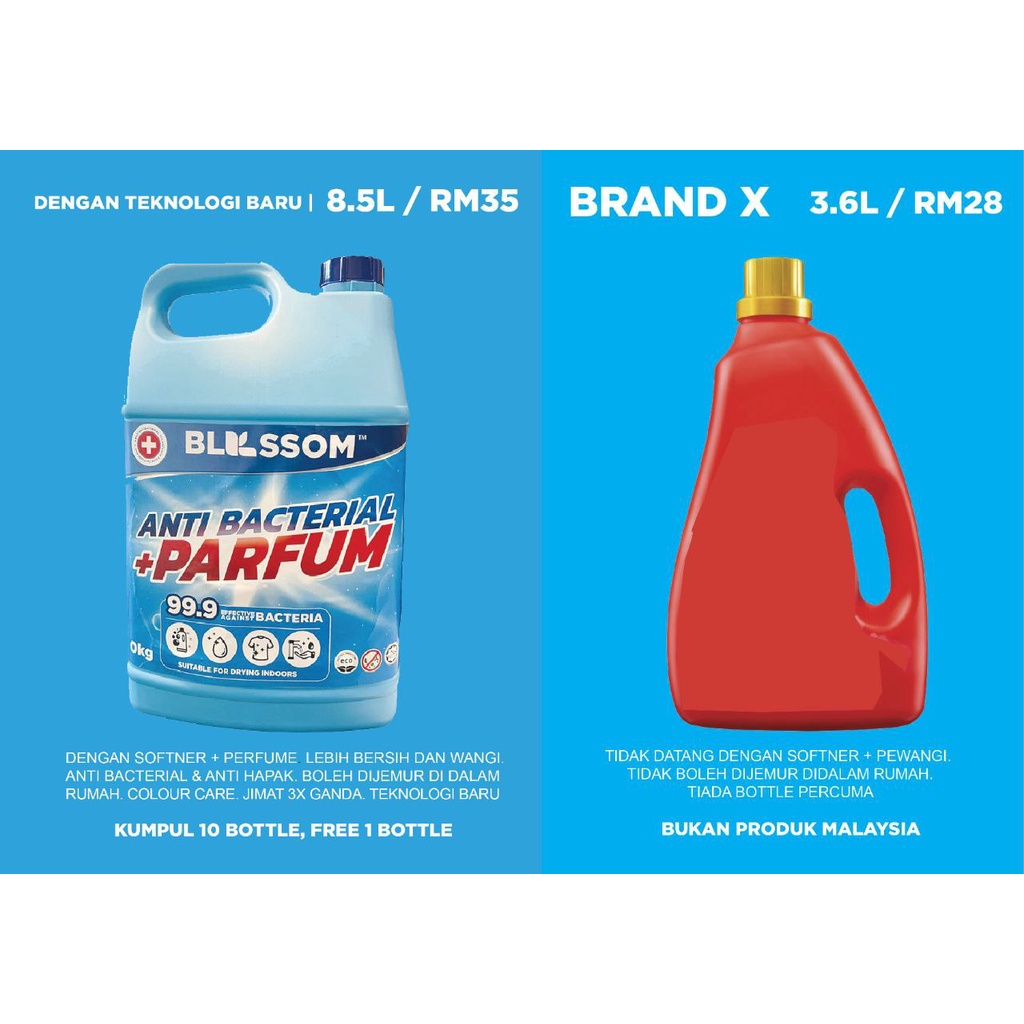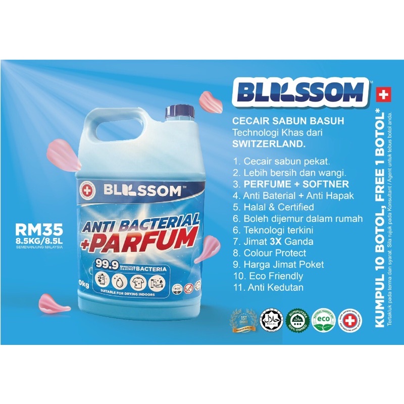 🇨🇭 Blossom (4 in 1) Antibacterial Detergent + Softener + Fragrant Perfume 8.5L Laundry Pencuci Pakaian Dobi