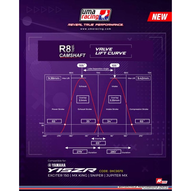100% ORIGINAL UMA RACING LC135 Y15ZR FZ150 Y16 R1 R3 R4 R5 R8 S1 RACING HIGH CAM CAMSHAFT CAM SHAFT LC 135 Y15 FZ PCO