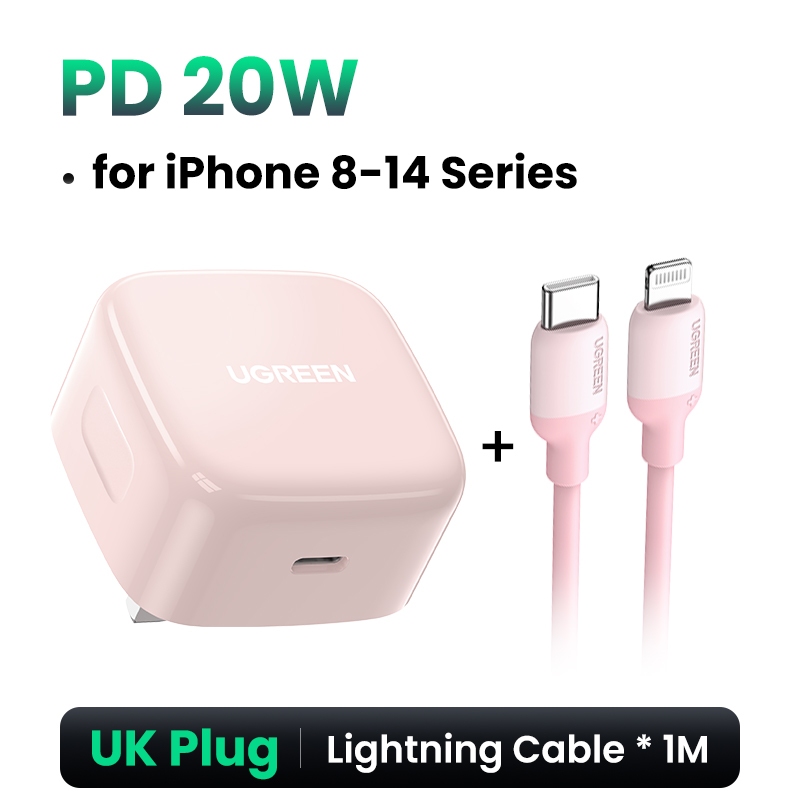 (PD20W Charger + 1M MFI Cable Set) UGREEN USB-C 20W PD Charger Fast Charging PD20W Power Adapter for iPhone 17/16/15/14 Pro Max