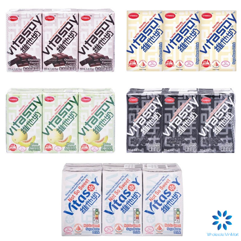 Vitasoy Soya Bean Packet Drink 维他奶 6x250ml - Original, Melon, Less Sugar, Chocolate, Black Soya Milk