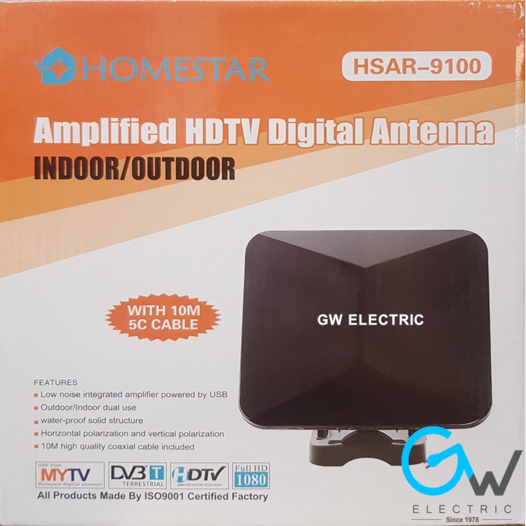 HOMESTAR HSAR-9100 Amplified HDTV Digital Antenna For Indoor / Outdoor With USB powered, Build-in booster, 10M Cables.