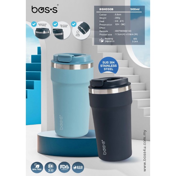 (NEW ARRIVAL) BOS'S Stainless Steel Travel Vacuum Mug 500ml BSH050B