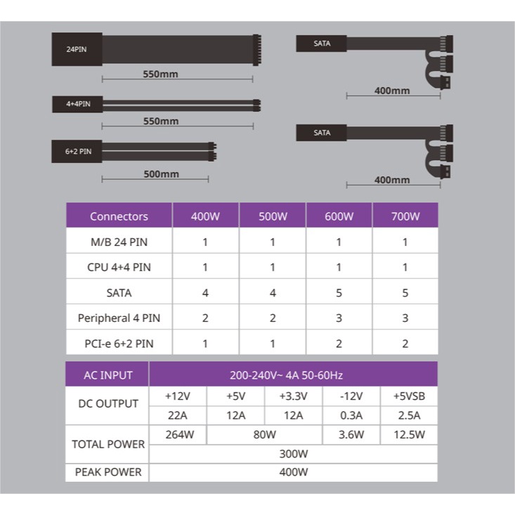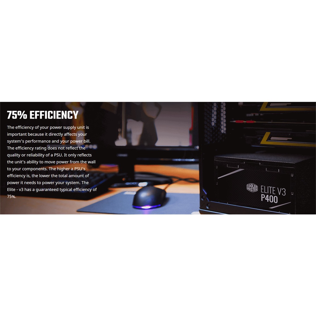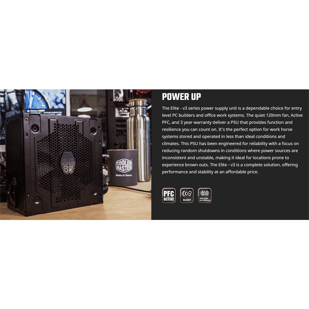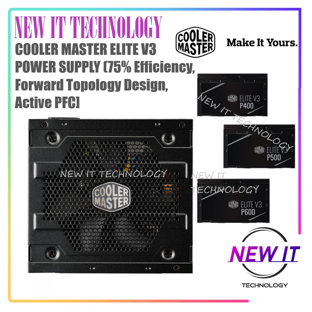 COOLER MASTER ELITE V3 230V PC POWER SUPPLY PSU (75%Efficiency, Forward Topology Design, Active PFC] 400W / 500W / 600W