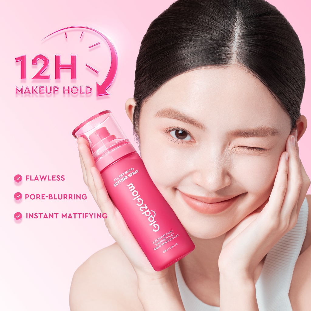 Glad2Glow 2 pcs All Day Matte Setting Spray Set cushion foundation make-up Combo for Long Lasting Finish