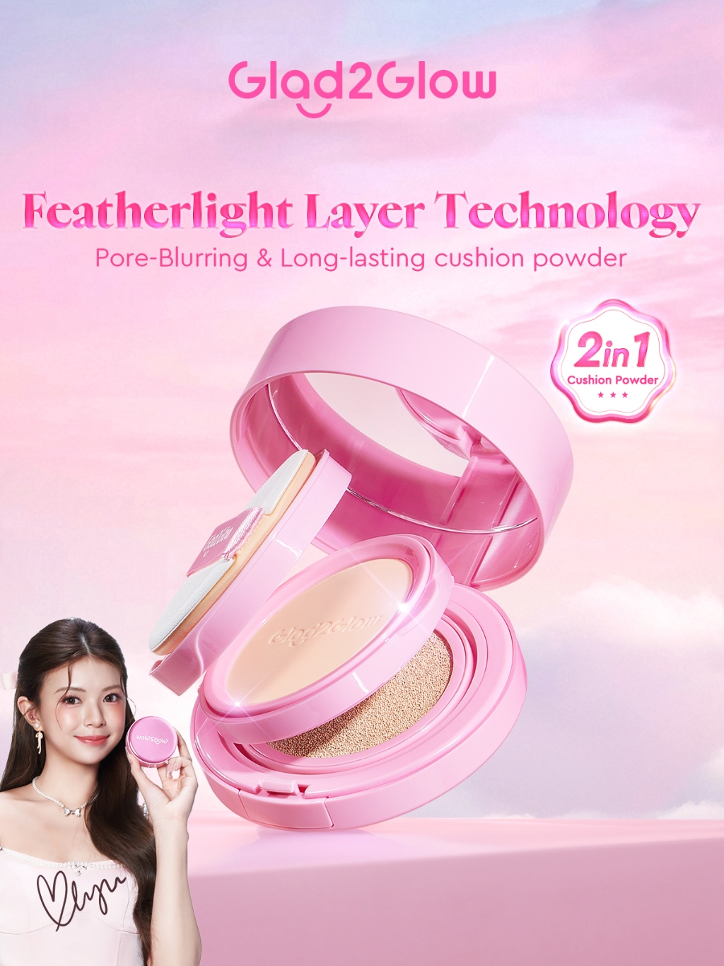 Glad2Glow Perfect Pair Cushion Powder Foundation Hydrating Cushion+Powder Matte High Coverage Oil Control Last Up To 8h