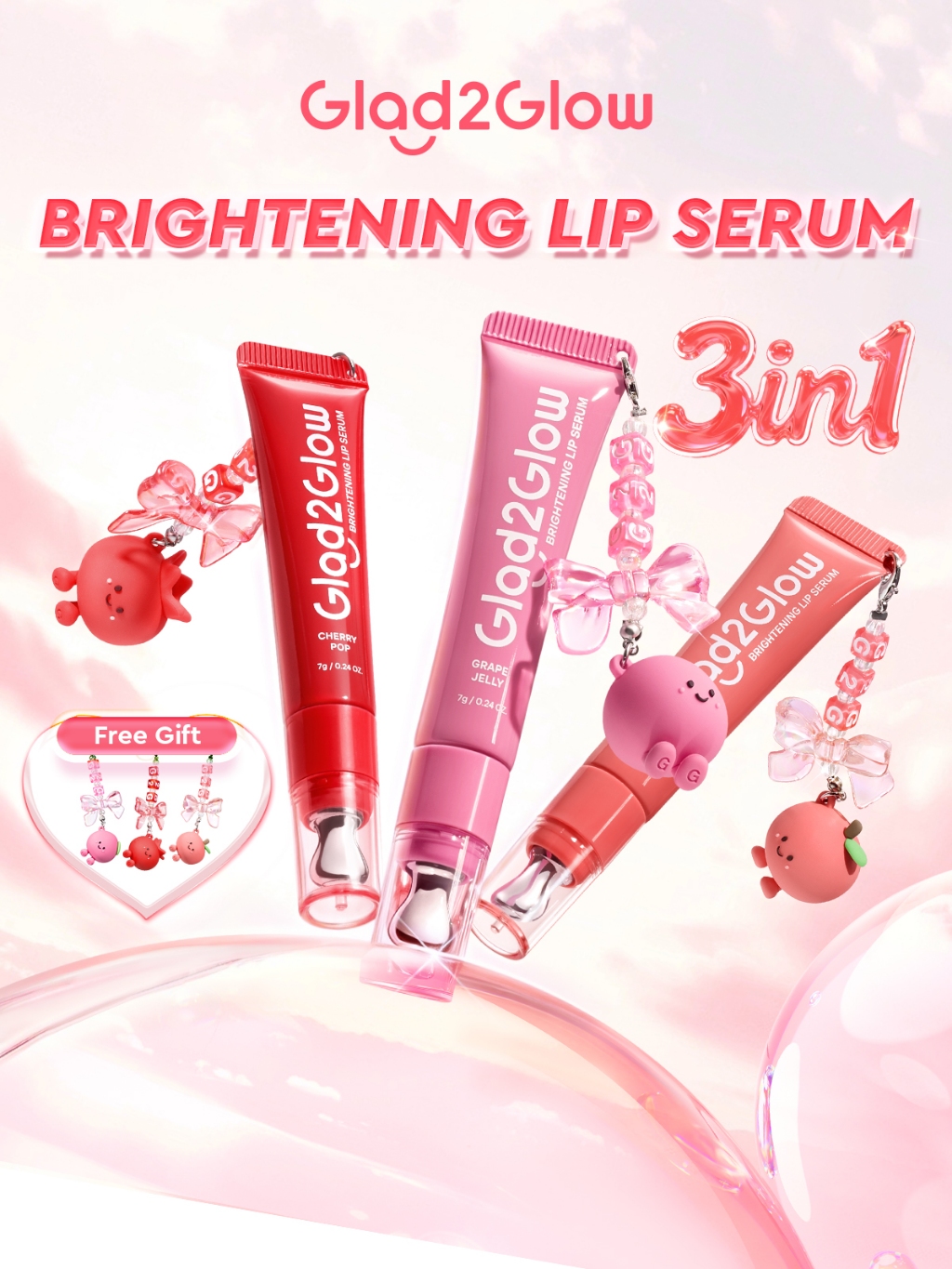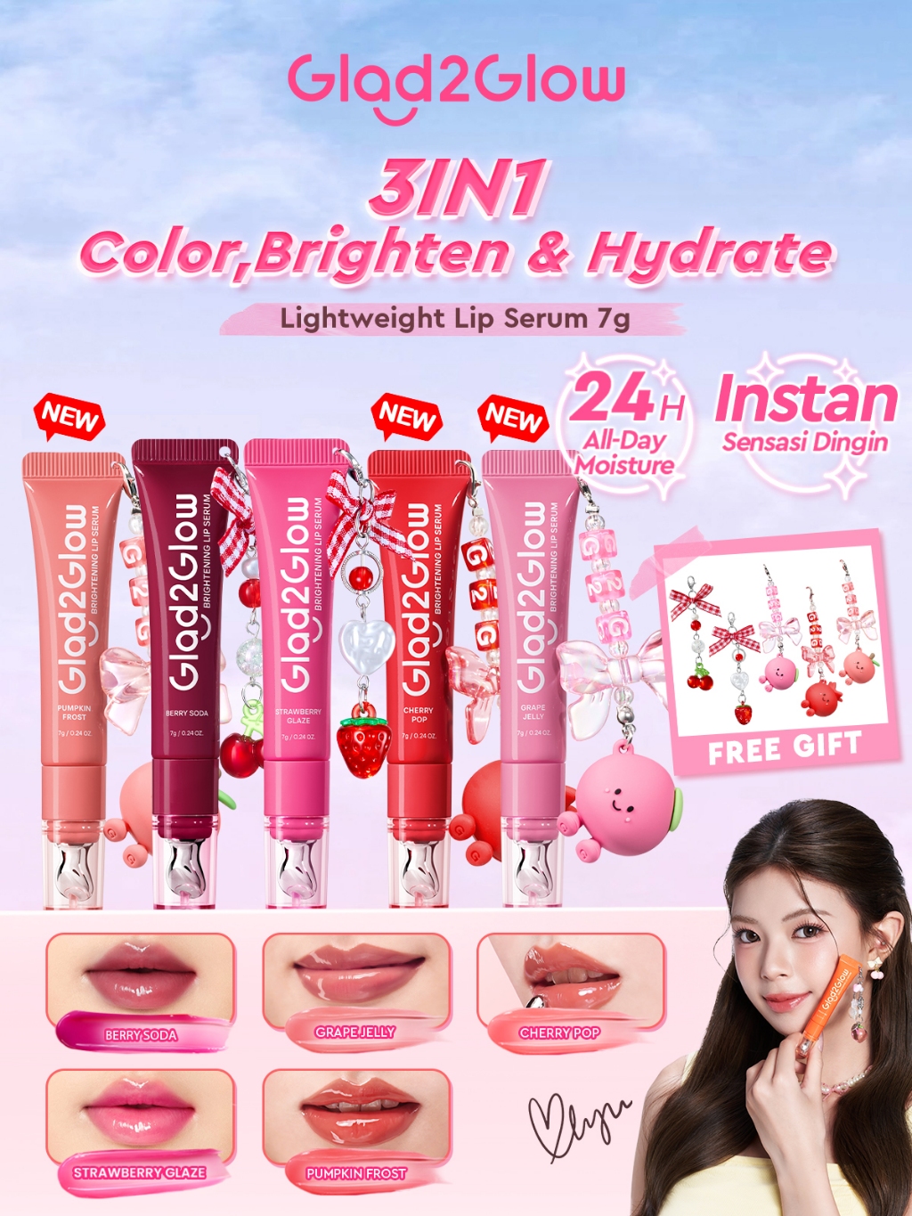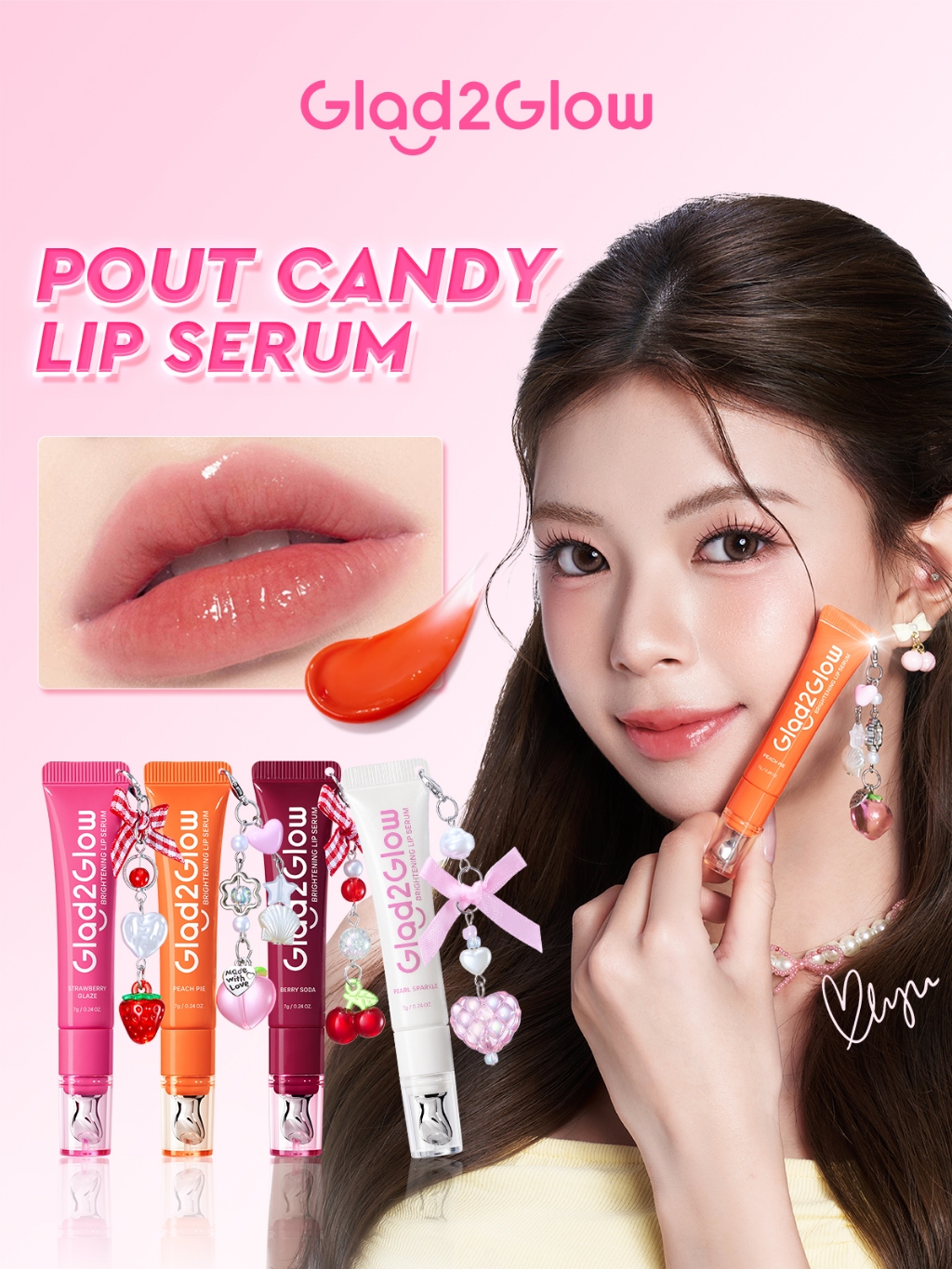 【New shade】Glad2Glow POUT CANDY Lip Gloss Brightening & Color & Hydrate 3in1 Lightweight Serum Lip Balm