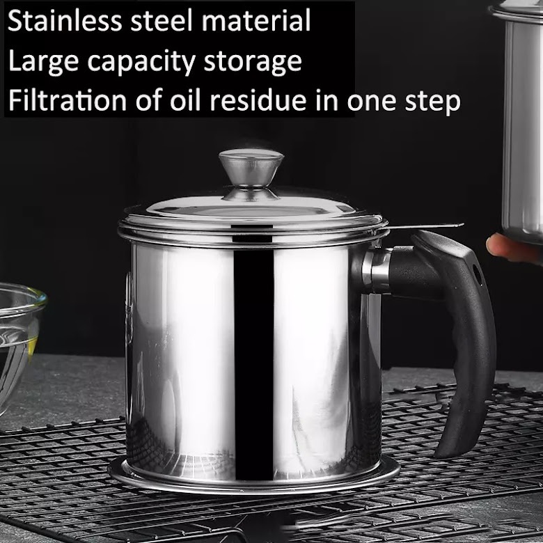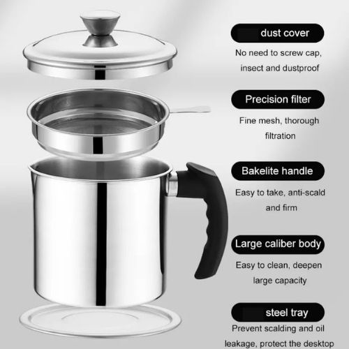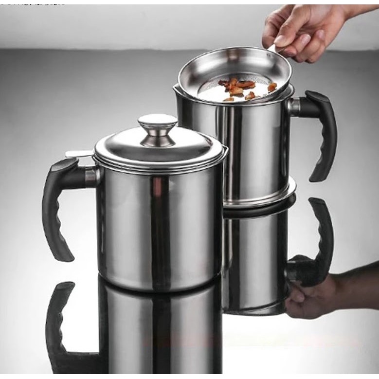 CAPTAIN COOK SUS304 HIGH-QUALITY STAINLESS STEEL COOKING OIL MUG W/STRAINER | OIL POT 滤油壶 Penapis Minyak Oil Filter