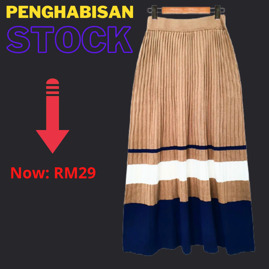 Skirt Kembang Labuh Stretchable Pleated Knitted Maxi Muslimah Kain Tebal Tidak Jarang