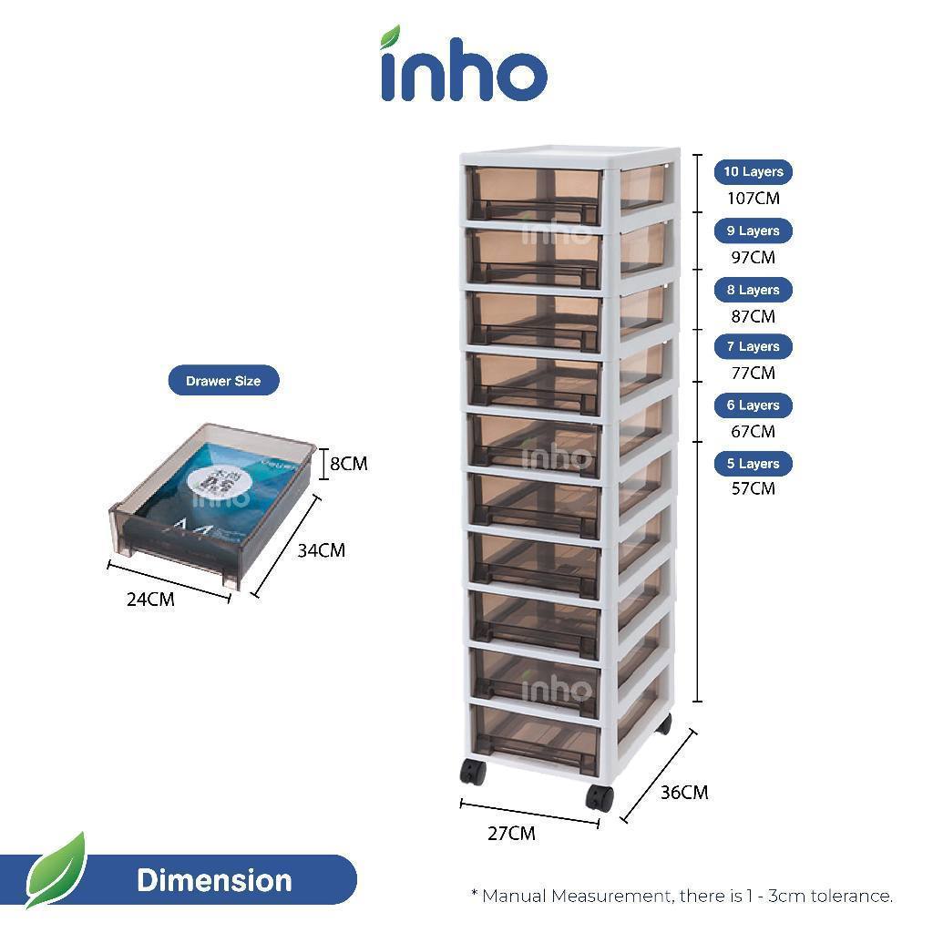 INHO L27cm (5-10 Layers) Versatile Movable Office Home Trolley Drawer Storage Cabinet With Wheels