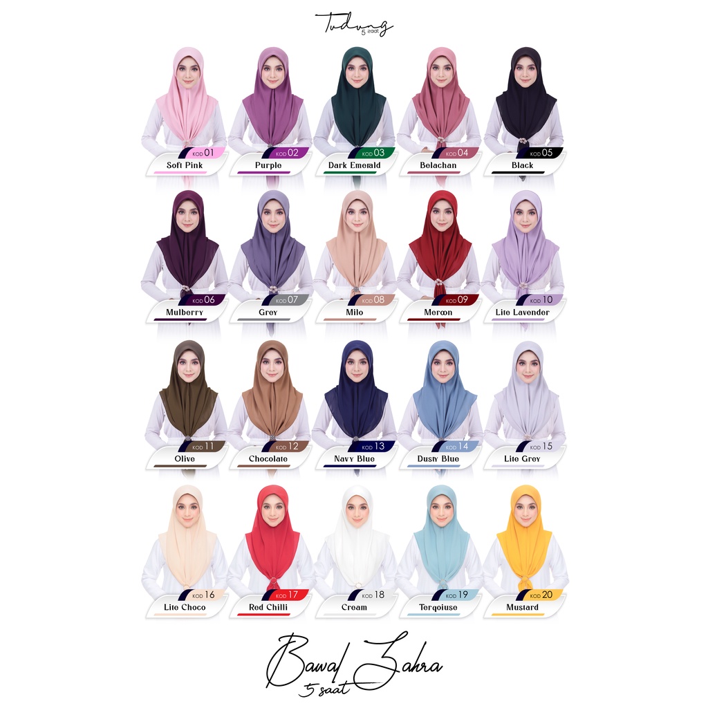 [PROMO] Tudung Sarung Bawal 5 Saat Bidang 45 Set 5 Helai RM100 FREE Brooch Cantik