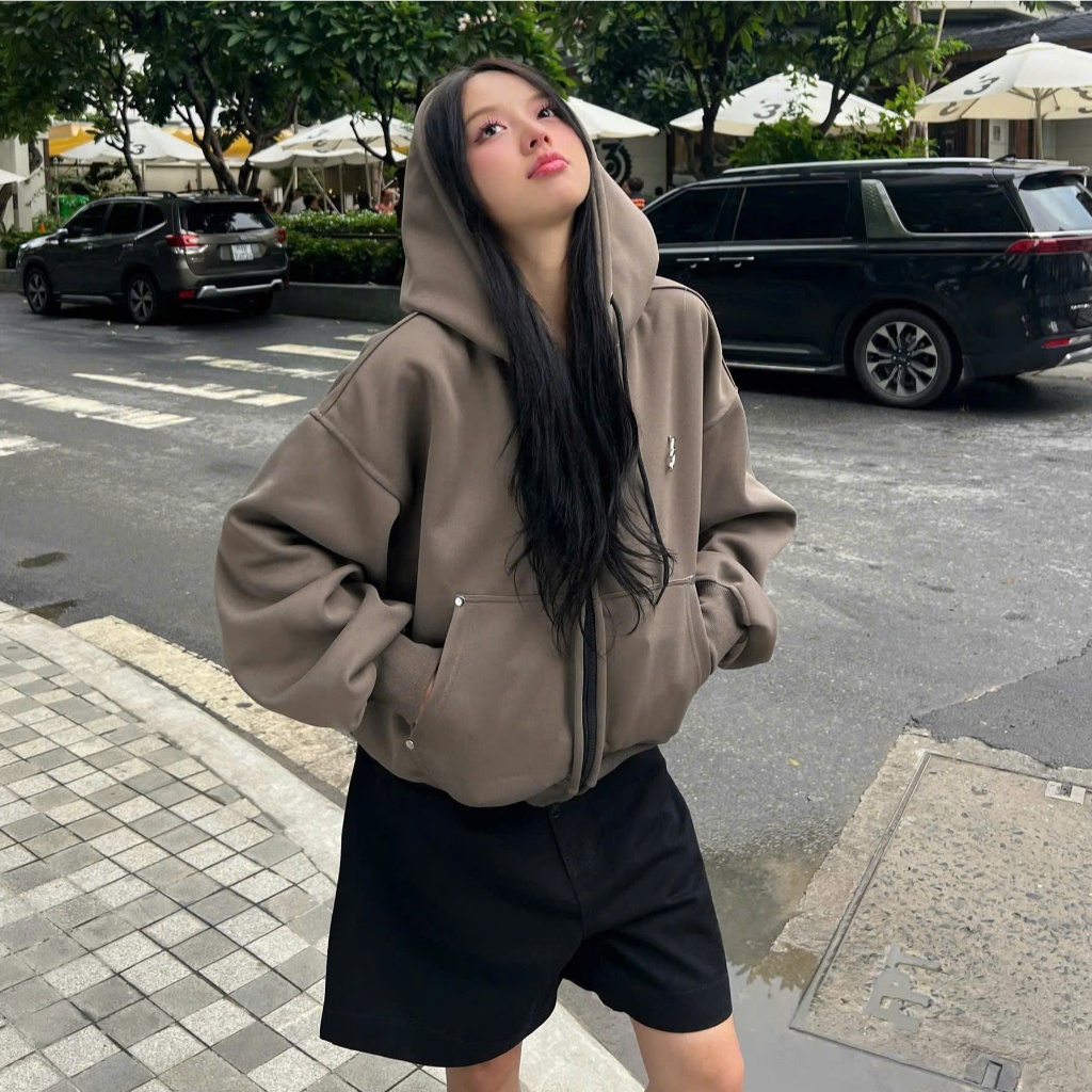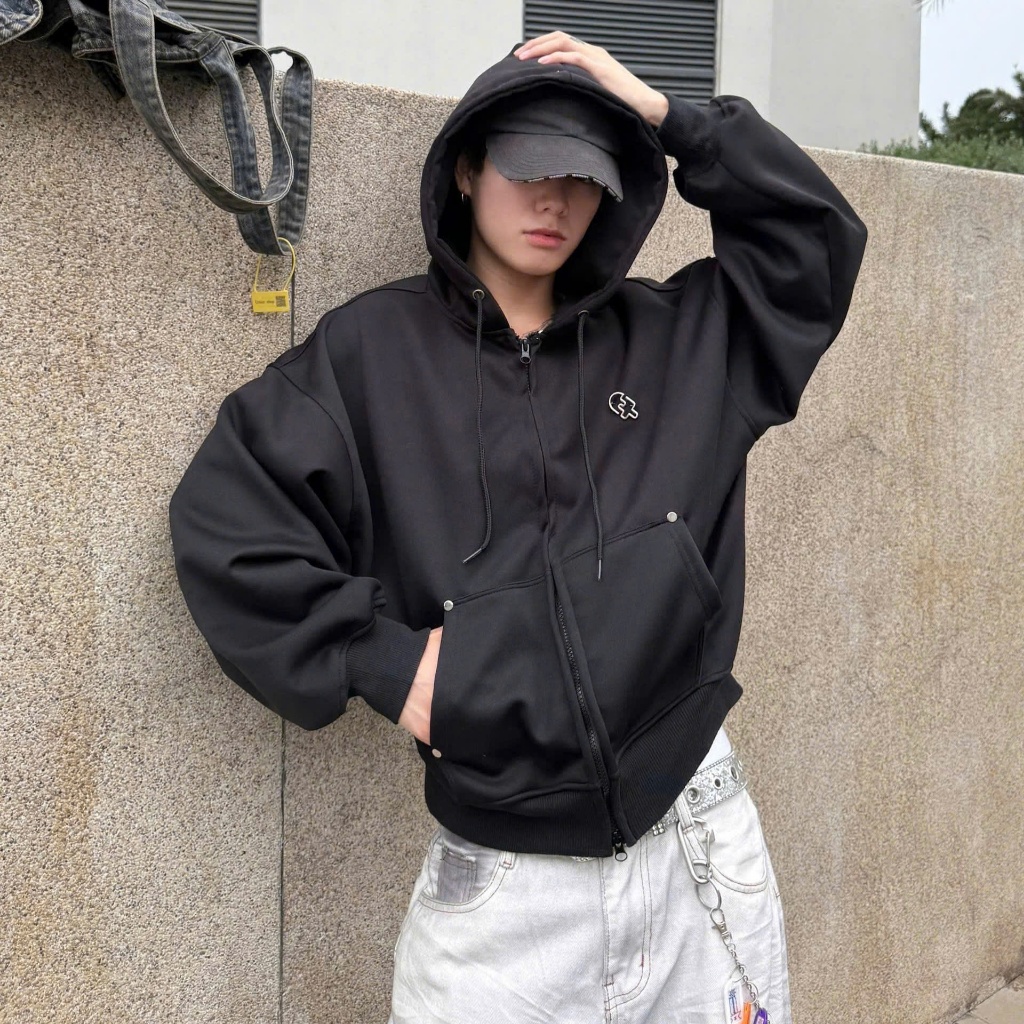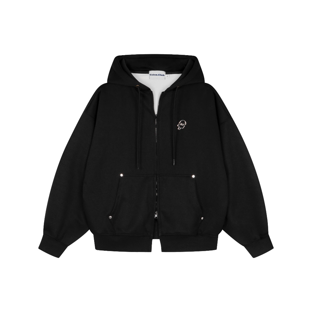 ChillPop Calem.Club zip Hoodie, 2-skin Boxy felt fabric, loose form, unisex for men and women - comes with a pin for each shirt