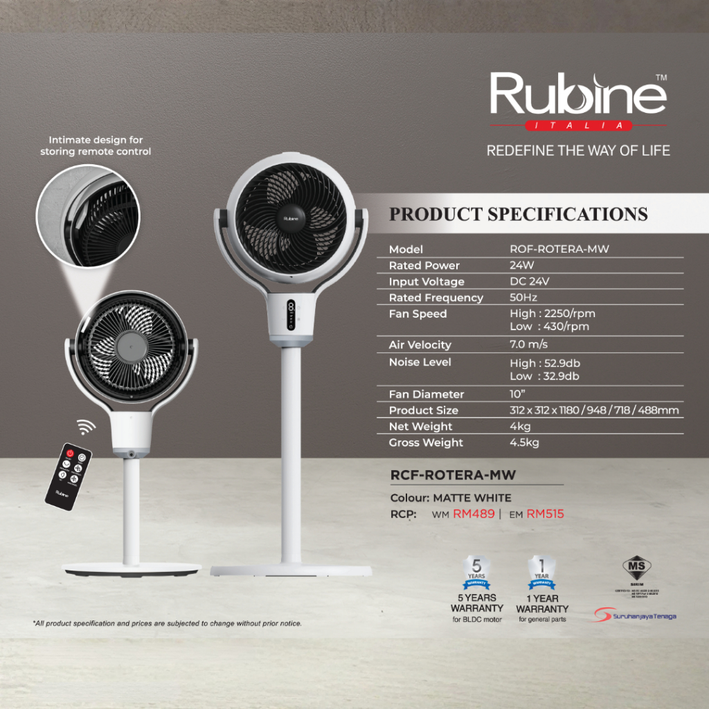 Rubine ROF-ROTERA-MW 24W BLDC Motor SIRIM Air Circulation Circulator Mini Table Stand Fan Kipas Berdiri Meja 空气循环直立扇 桌扇