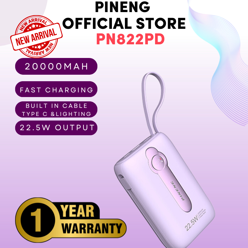 3C(ccc)approved PINENG powerbank PN876/pn892/pn822 FAST CHARGING 22.5W BUILT IN CABLE TYPE C &IP 20000MA&10000MAH