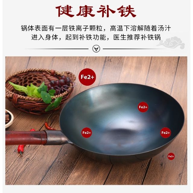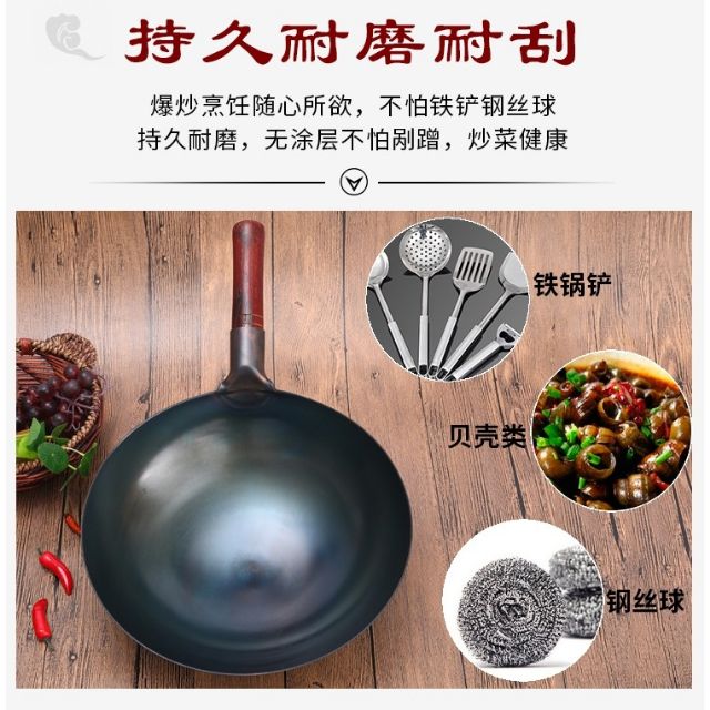 👍👍<<100%正品>>老式熟铁锅铸铁炒锅家用无涂层手工不粘锅燃气灶炒菜锅<<100%Original>>Old-fashioned Carbon Steel wok cast iron wok /Wok Jenis Lama /metal