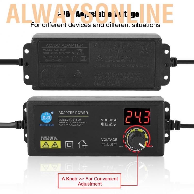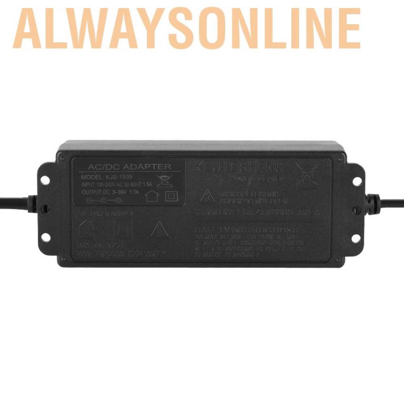 Alwaysonline 3-36V Wide Range Adjustable Power Adapter Anti-interference 60W 1.7A AC DC