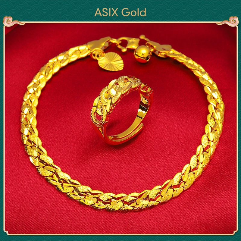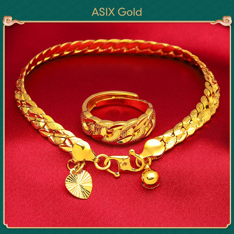 ASIXGOLD Set Barang Kemas Emas Wanita Korea Emas 916 Cincin Gelang Emas Untuk Wanita / Women's Gold Jewelry Set Korea Gold 916 Ring Gold Bracelet For Women