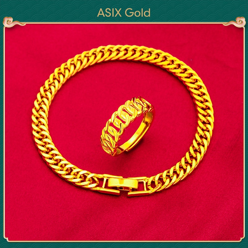 ASIXGOLD Set Barang Kemas Emas Pasangan Wanita Korea Emas 916 Cincin Emas Rantai Tangan Simple Untuk Lelaki / Couple Ladies Gold Jewelry Set Korea Gold 916 Ring Gold Simple Hand Chain For Men