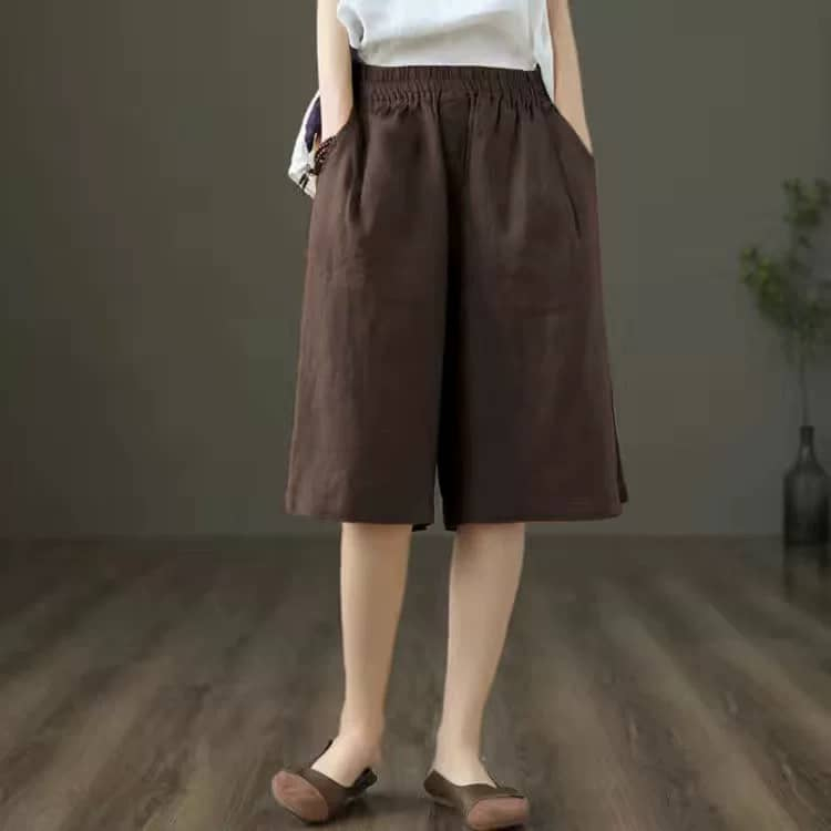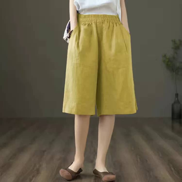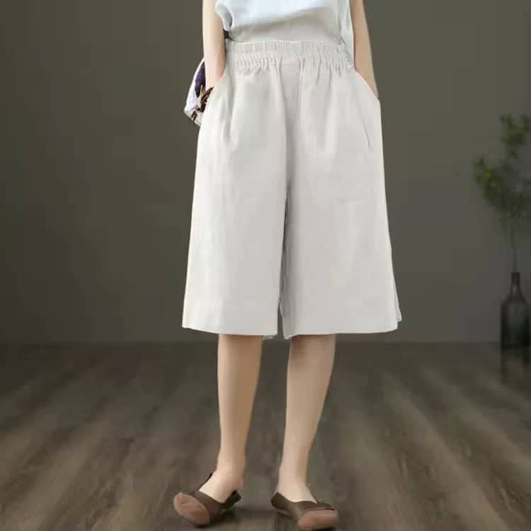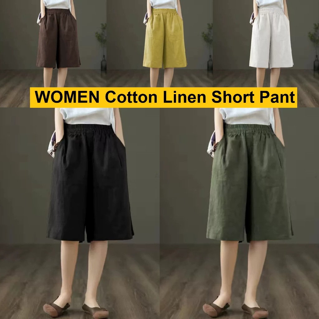 Women Casual Loose Short Pant Cotton Linen High Waist Pant Plus Size Lady Simple Plain Pants 女士棉麻简约高腰宽松短裤
