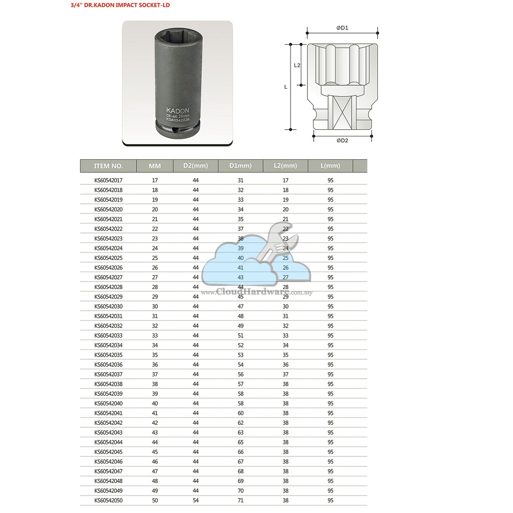 3/4" 32MM KADON IMPACT SOCKET-LD [CHKS60542032]