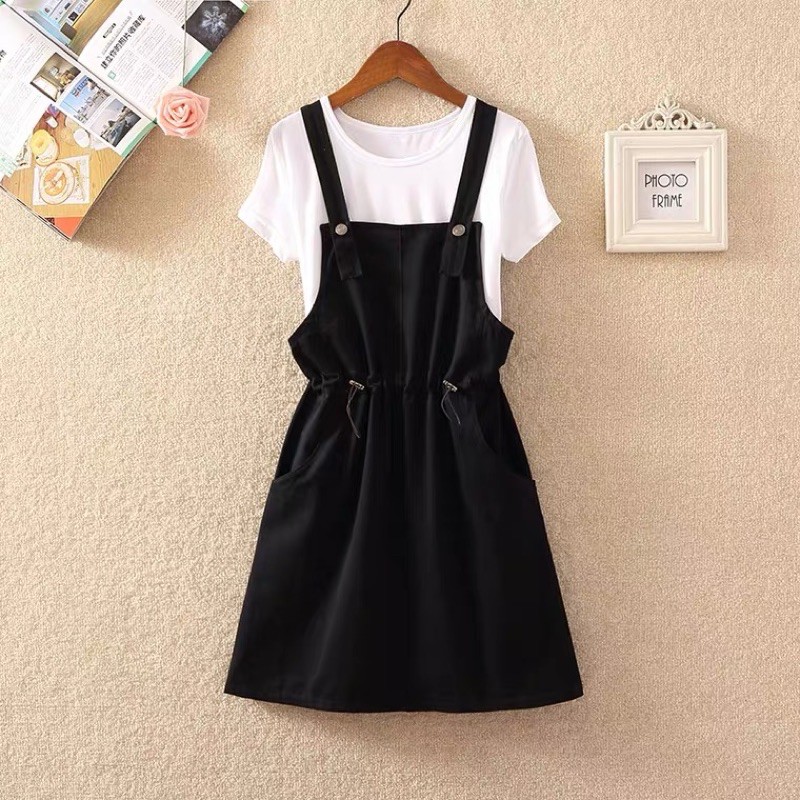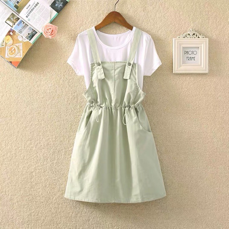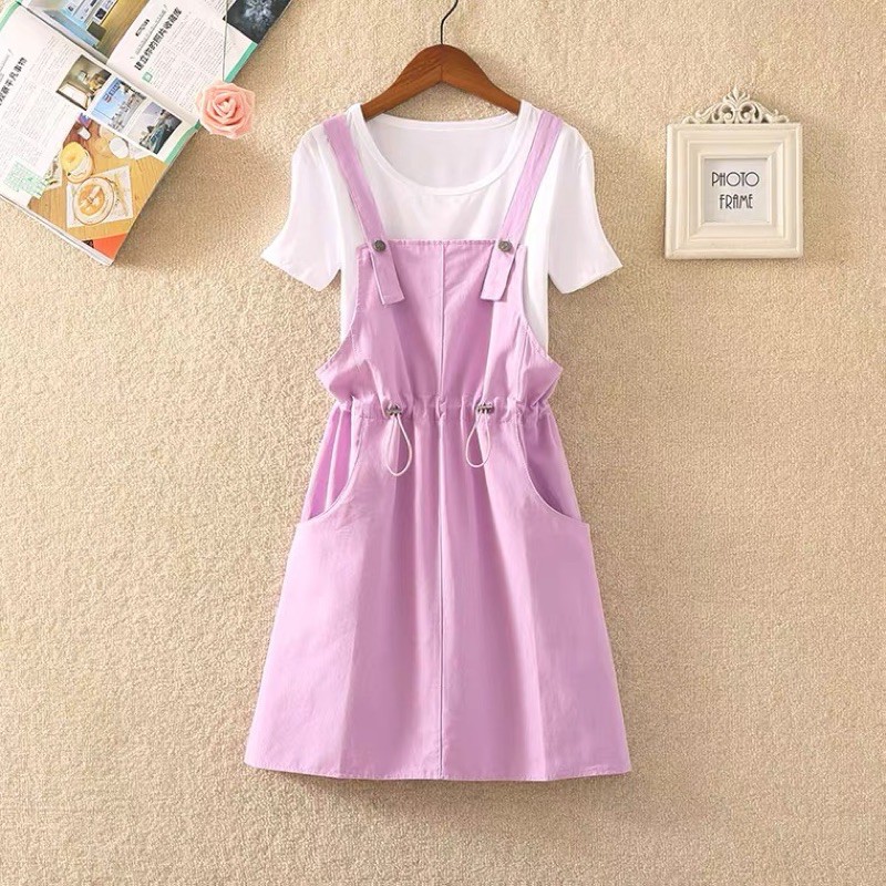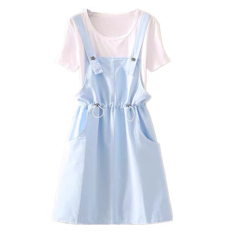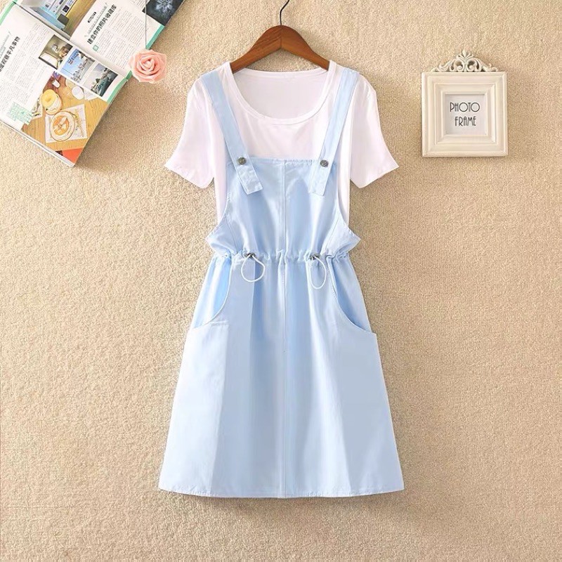 少女两件套牛仔背带裙女夏装学院风裙子高中学生套装初中生连衣裙