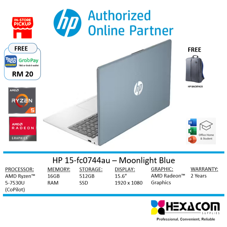 HP 15-FC0744AU/FC0745AU/FC0746AU/FC0747AU (Ryzen 5-7530U/16GB RAM/512GB SSD/MICROSOFT 2024/2 YEARS WARRANTY)