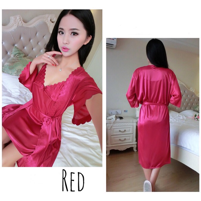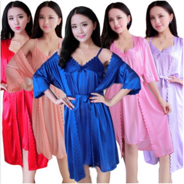 [2 in 1] Women Dress ( Lembut ) Nightwear Home Sexy Pajamas Ready Stock Webee